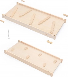 Tato oboustranná deska je navržena pro všestranný pohyb a bezpečnou hru v interiéru. Hladká plocha je ideální na klouzání nebo jako stabilní chodníček, zatímco druhá strana s úchyty vybízí děti ke šplhání a překonávání nových výzev. Kvalitní bukové dřevo a překližka zajišťují pevnost, stabilitu a dlouhou životnost.