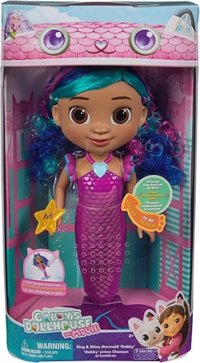 Mořská víla Gábina z filmu Gábinin kouzelný domek přináší dětem propojení světel, zvuků a vodních efektů. Stiskněte srdíčkový náhrdelník a užijte si světelné efekty a 14 autentických zvuků a frází. Ocas panenky navíc v teplé vodě mění barvu, takže každá koupel či vodní hra je plná překvapení.
