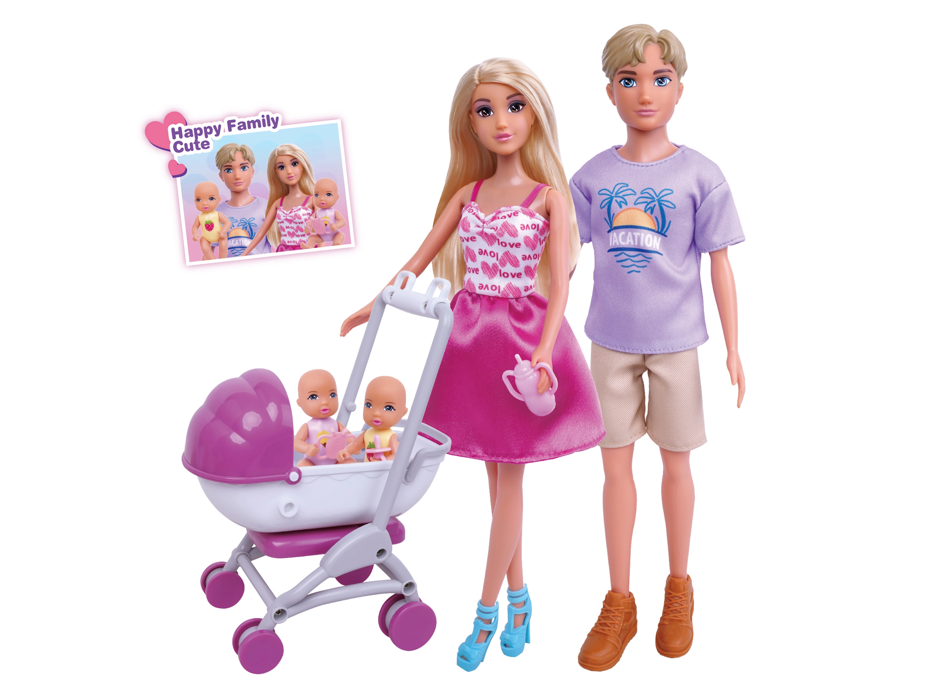 Užijte si rodinná dobrodružství s touto roztomilou sadou – panenka s výškou 30 cm, její manžel, dvě miminka a bohaté příslušenství. Součástí je multifunkční kočárek, který lze snadno přestavit z hlubokého na sportovní verzi. Skvělá hračka pro rozvoj fantazie, rolové hry a pečovatelských dovedností dětí.