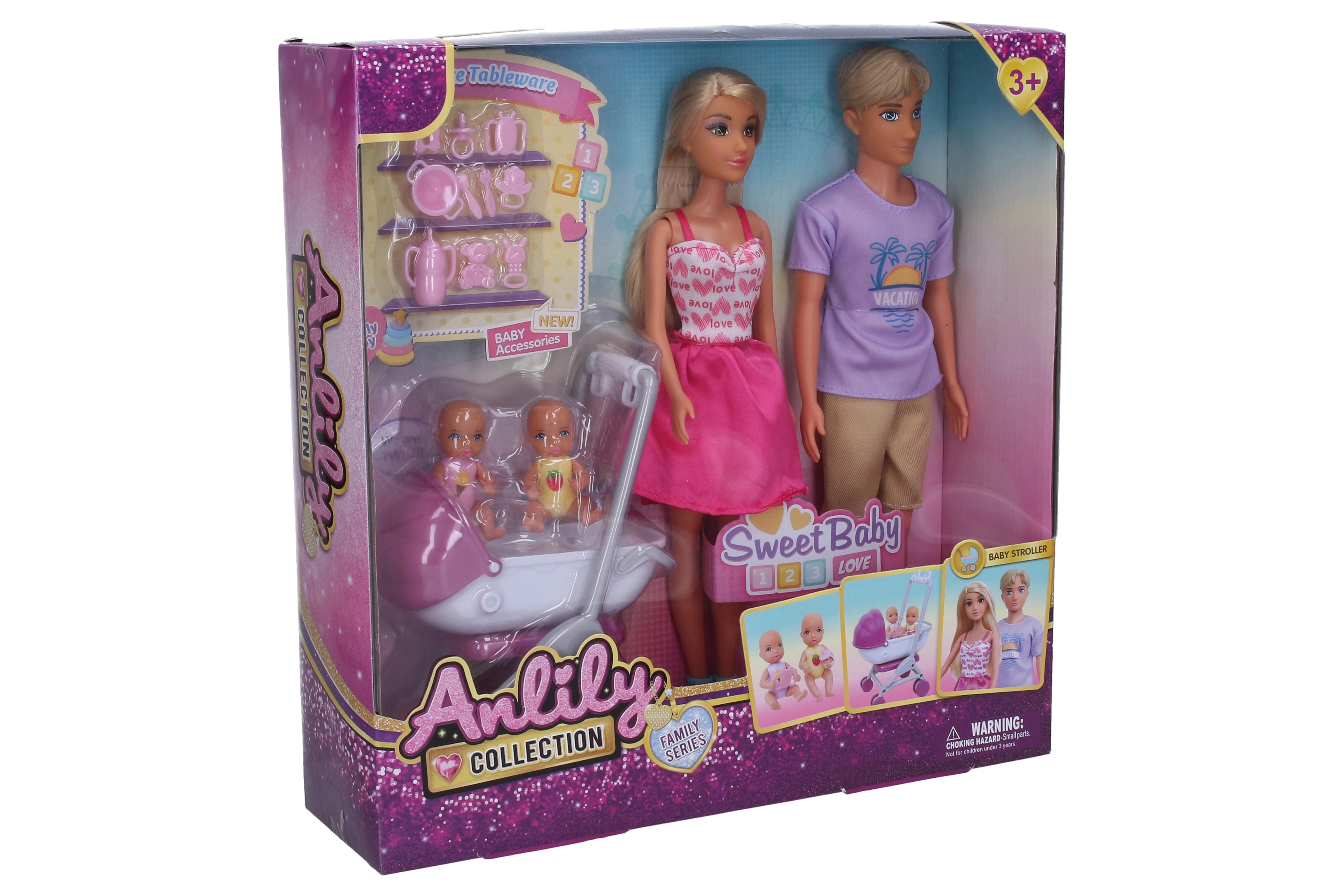 - Kompletní rodinný set: panenka 30 cm, manžel, 2 miminka, kočárek a doplňky