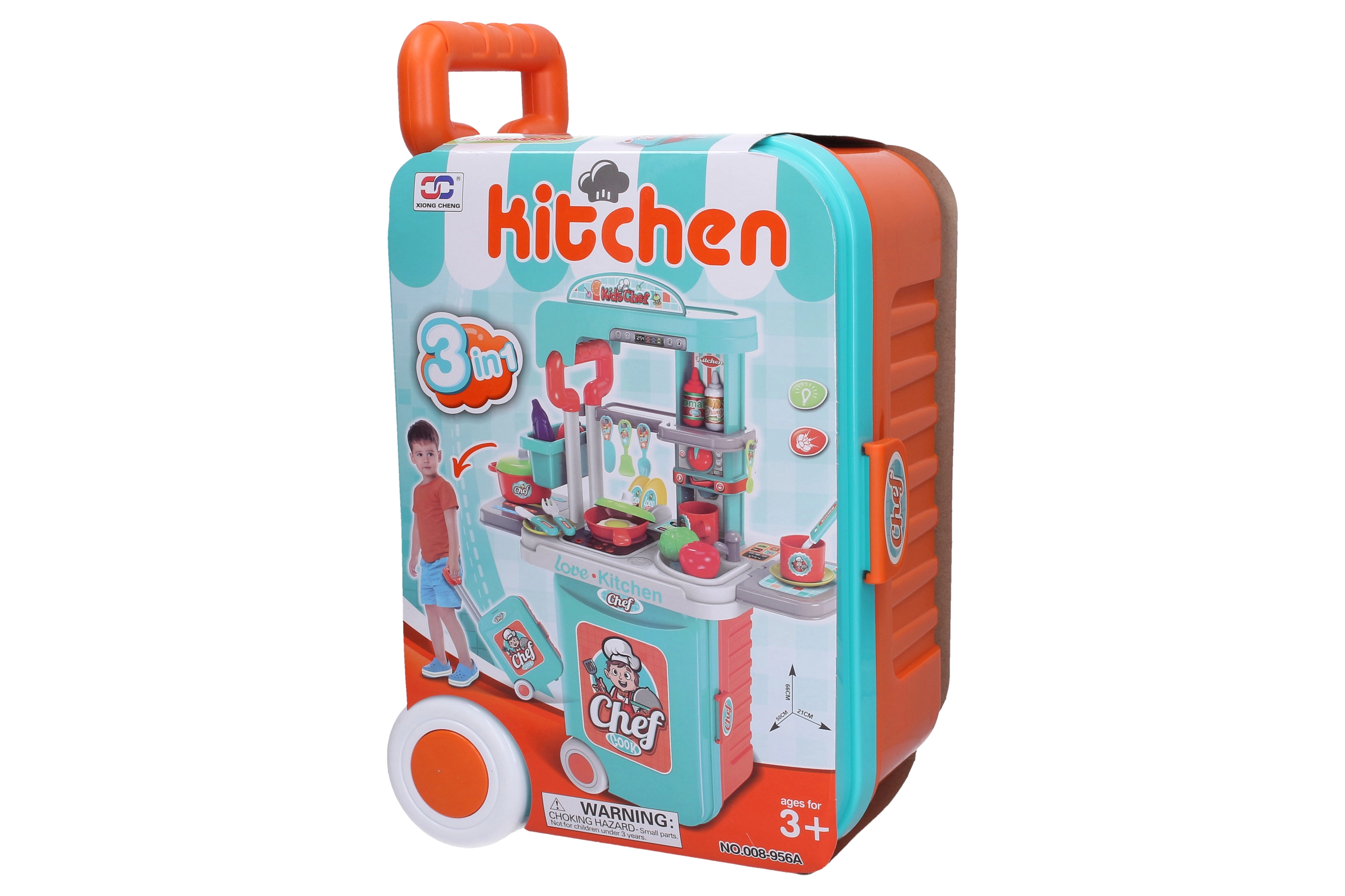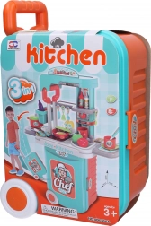 Praktická dětská kuchyňka v podobě kufříku na kolečkách potěší malé kuchaře na cestách i doma. Snadno se rozkládá, nabízí bohaté příslušenství a světelné a zvukové efekty varné desky. Díky vysunovacímu madlu a kompaktním rozměrům je ideální na přenášení, přičemž se během chvilky promění v plnohodnotnou kuchyňku.
