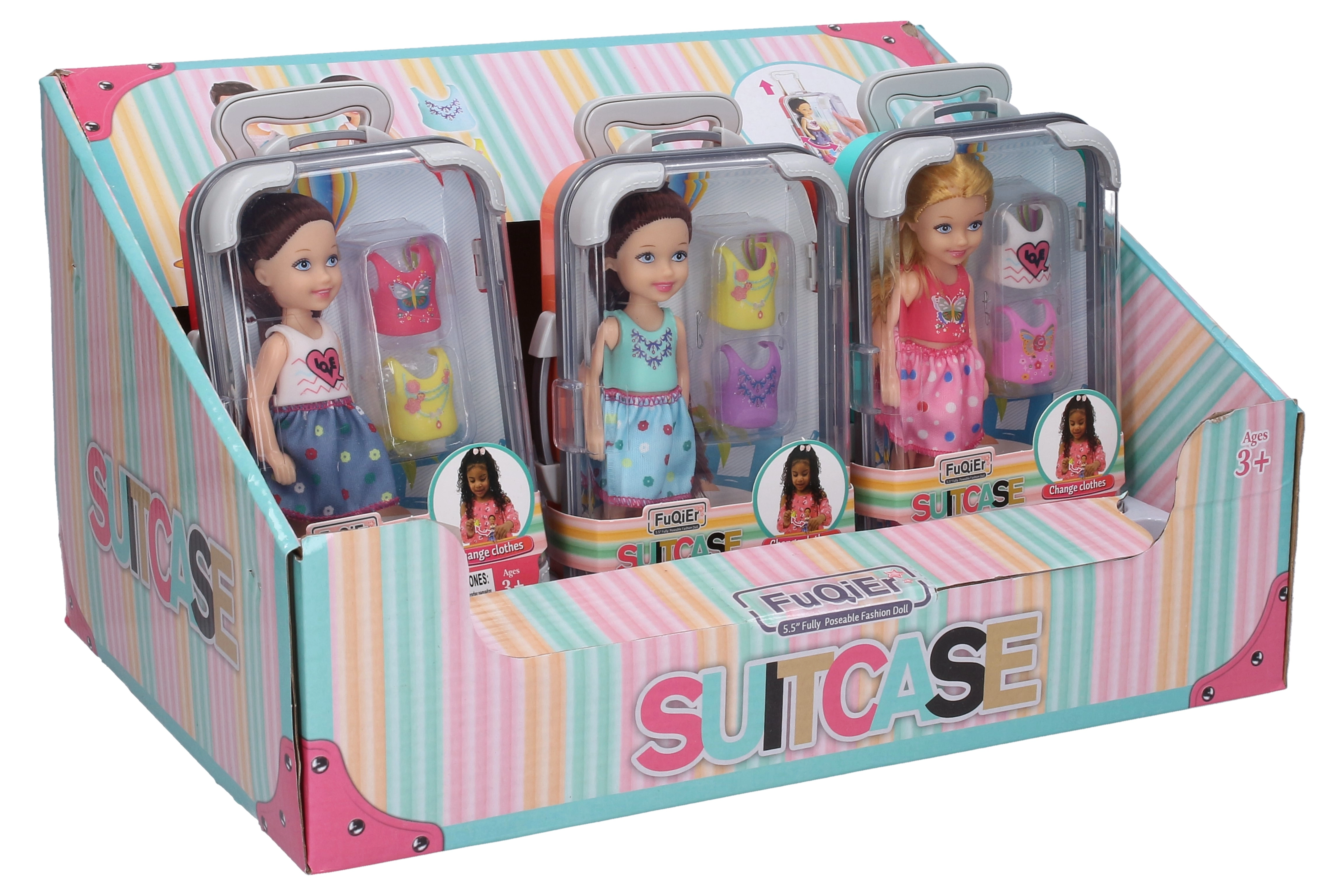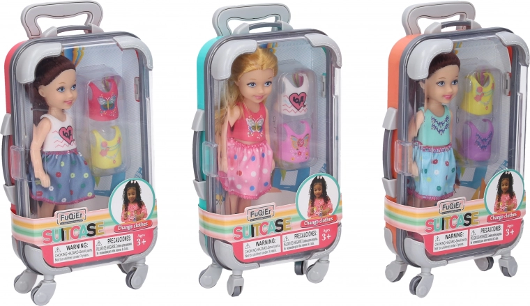 Roztomilá panenka v praktickém kufříku potěší každé dítě na cestách i doma. Součástí balení je panenka o velikosti 14 cm a dvě náhradní trička pro snadné převlékání. Kufřík 20 cm usnadní ukládání i přenášení a zábavu rozšíří 3 různé varianty vzhledu.
