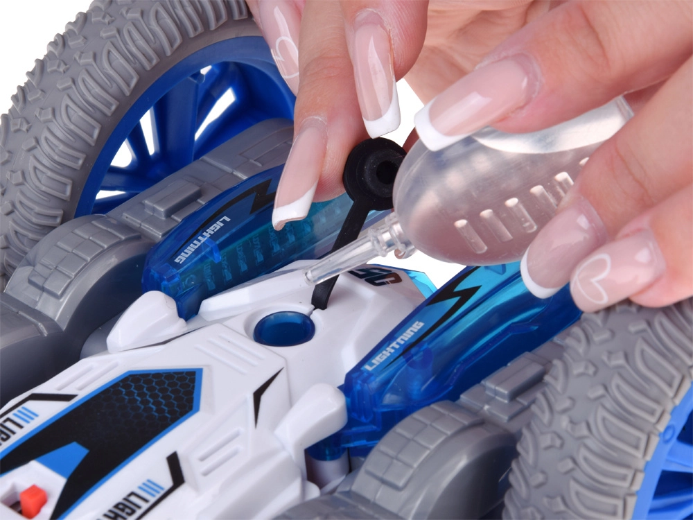 Toto kaskadérské RC auto je stvořené pro adrenalinovou jízdu doma i na hladkém povrchu venku. Díky obřím kolům a obratné konstrukci zvládá přemety, jízdu po „břiše i zádech“, rychlé změny směru i působivé 360° rotace. Efekt podsvícené vodní páry a dvoubarevné LED diody dodávají jízdě atraktivní vzhled.