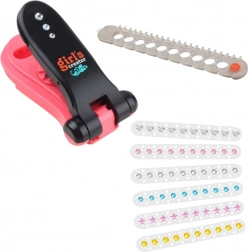 Kreativní sada pro malé parádnice umožní rychle a snadno zdobit vlasy, nehty, pokožku i předměty třpytivými kamínky. Díky praktické mašince stačí vložit pásku s krystalky, přiložit na vybrané místo a jediným stiskem vytvořit okamžitý lesklý efekt. V balení je 80 krystalků v různých tvarech pro nekonečné kombinace.