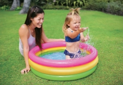 Nafukovací bazének INTEX přináší dětem radost z vodních hrátek přímo na vaší zahradě. Díky kompaktním rozměrům 86 × 25 cm se vejde téměř kamkoli a nízká hladina vody 17 cm zvyšuje pocit bezpečí pro nejmenší. Duhové barevné provedení je poutavé a láká ke hře.