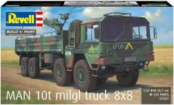 Plastikový model vojenské nákladní platformy MAN 10T MILGL 8x8 v měřítku 1/35 přináší autentické detaily podvozku 8x8, kabiny i nákladového prostoru. Model je určen k lepení a barvení, díky čemuž si můžete vůz upravit podle vlastních představ.
