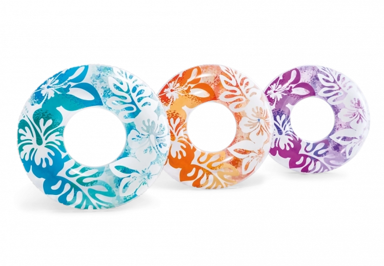 Užijte si léto s nafukovacím kruhem INTEX o průměru 91 cm s havajským květinovým vzorem. Odolný materiál, pohodlné nadnášení a zábava v bazénu i u moře pro děti od 9 let.