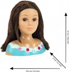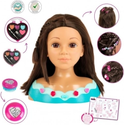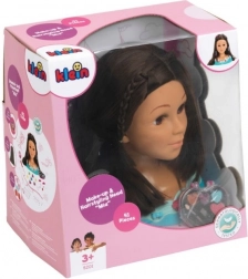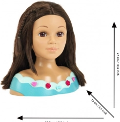 Hlava na česání a líčení Mia nabízí vše, co malí kadeřníci a vizážisté potřebují. Dlouhé, omyvatelné vlasy lze česat, kartáčovat, zaplétat a zdobit sponkami či korálky. Přiložená dětská kosmetika je dermatologicky testovaná, takže je bezpečná pro hru i jemnou dětskou pokožku.