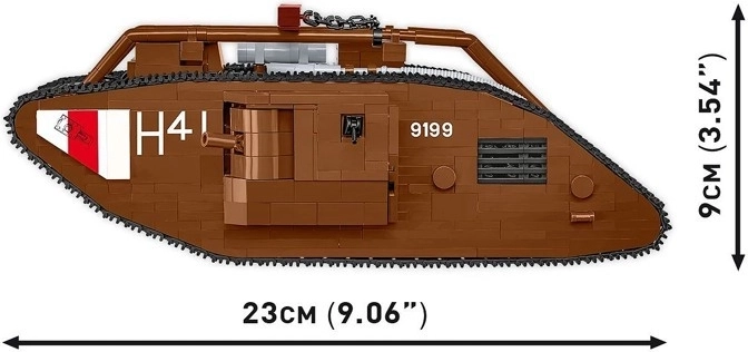 Tento precizně zpracovaný model legendárního britského tanku MARK V (Male) vychází z autentického muzejního kusu č. 9199 z The Tank Museum v Bovingtonu. Díky měřítku 1:35 skvěle ladí s figurkami a dalšími modely COBI. Trvalé potisky bez nálepek, funkční pásový pohon a detailní zpracování z něj dělají atraktivní kousek do sbírky.
