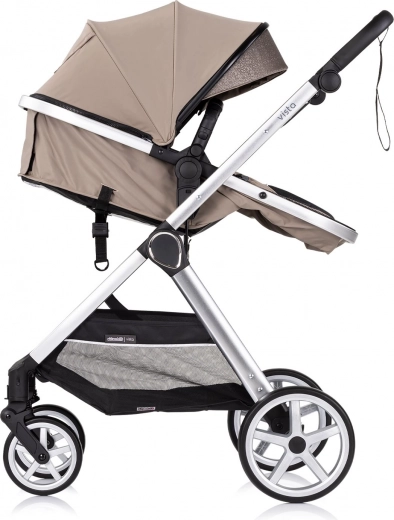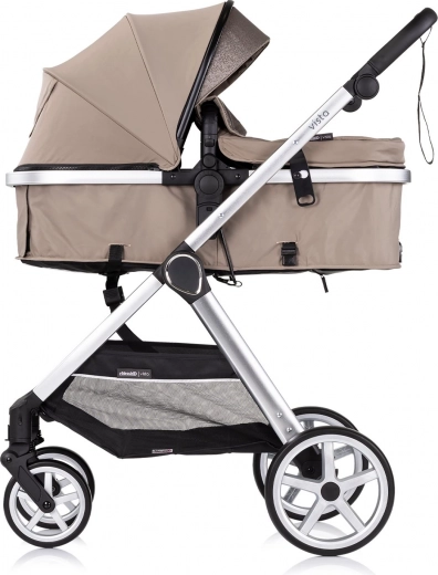 CHIPOLINO VISTA 2v1 je univerzální kočárek, který poroste s vaším dítětem od narození do batolecího věku. Sedací jednotku snadno přeměníte na hlubokou korbu pro novorozence a díky možnosti nasazení po i proti směru jízdy přizpůsobíte kočárek aktuálním potřebám. Lehký eloxovaný hliníkový rám a kvalitní odpružení všech kol zajišťují plynulou a pohodlnou jízdu ve městě i v parku.