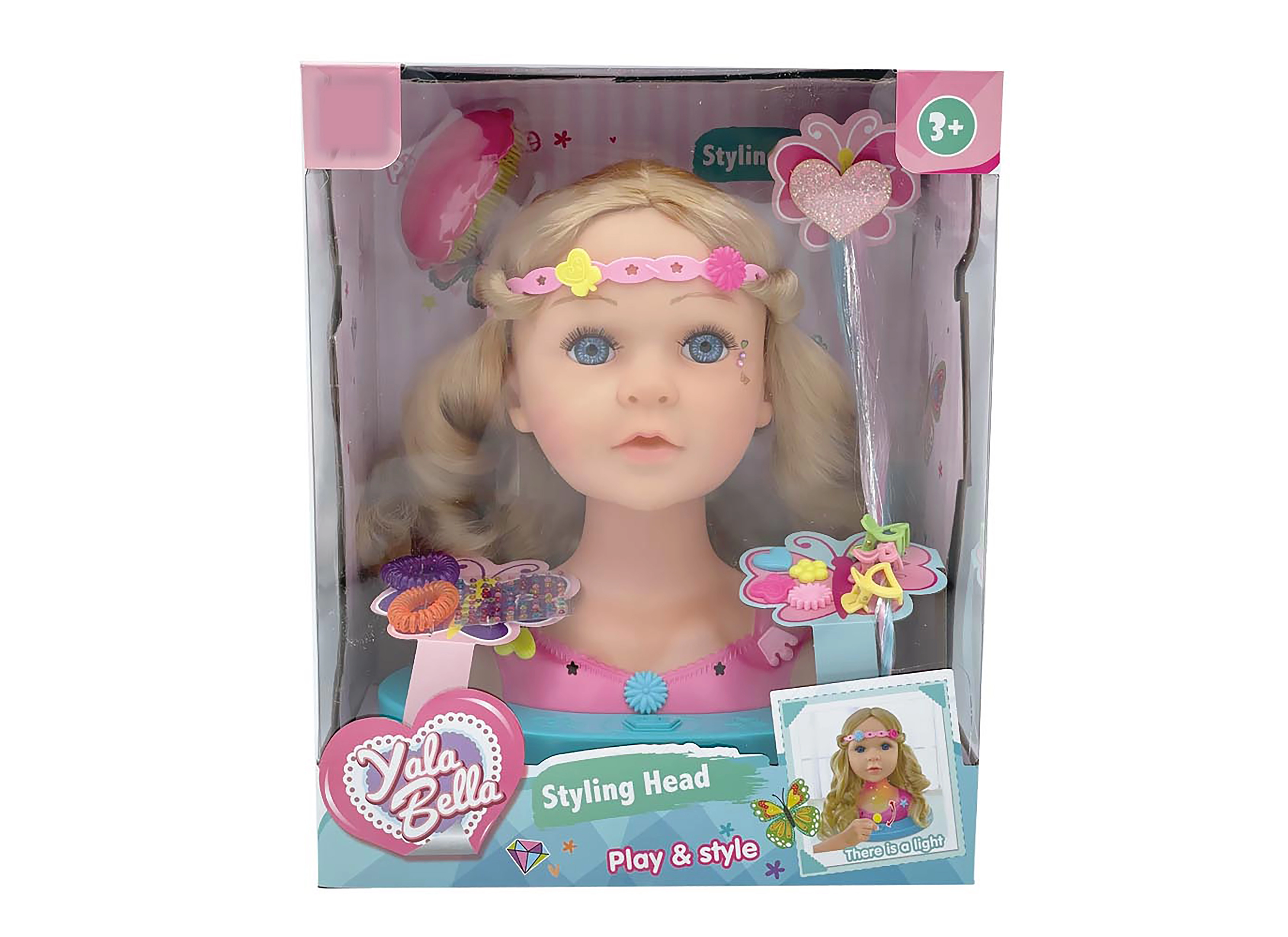 Tato česací hlava je skvělá hračka pro malé kadeřnice. Díky světelným efektům a pohodlnému tlačítku ve tvaru korunky na podstavci je úprava vlasů ještě zábavnější. Velikost 24 cm je ideální pro trénování copánků, drdolů i kreativních účesů.