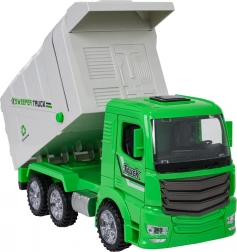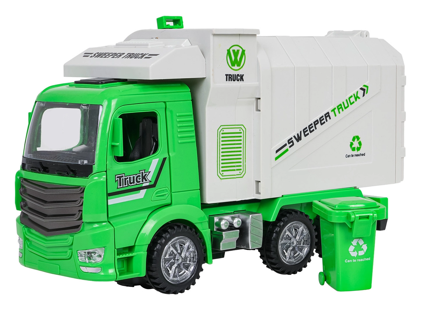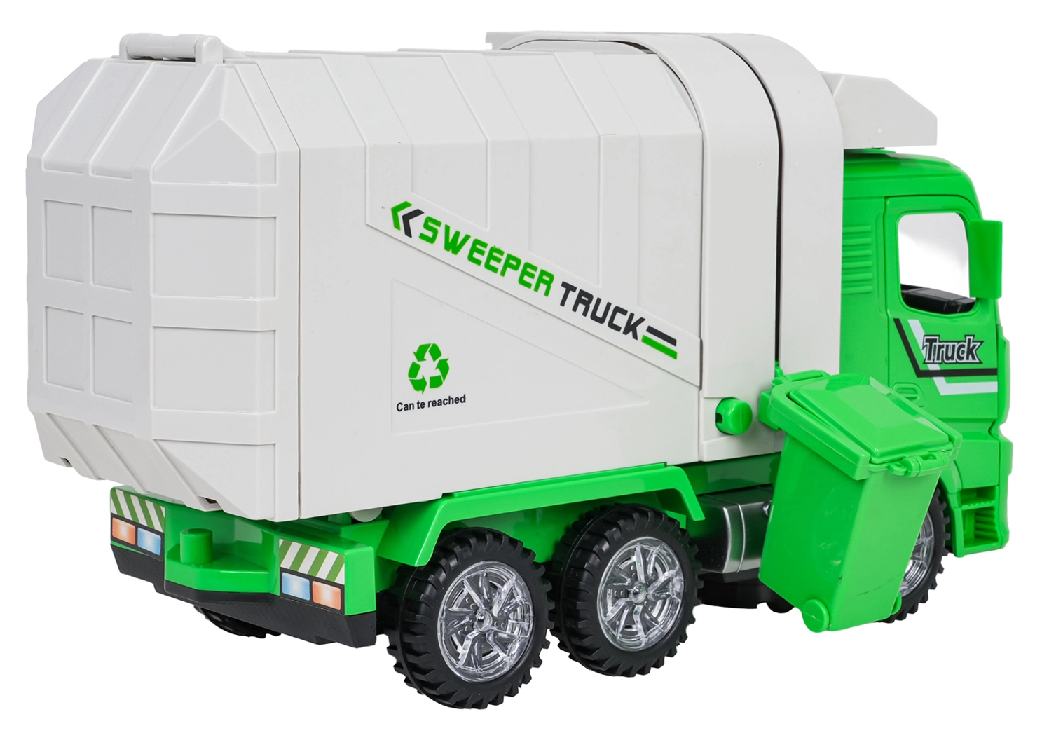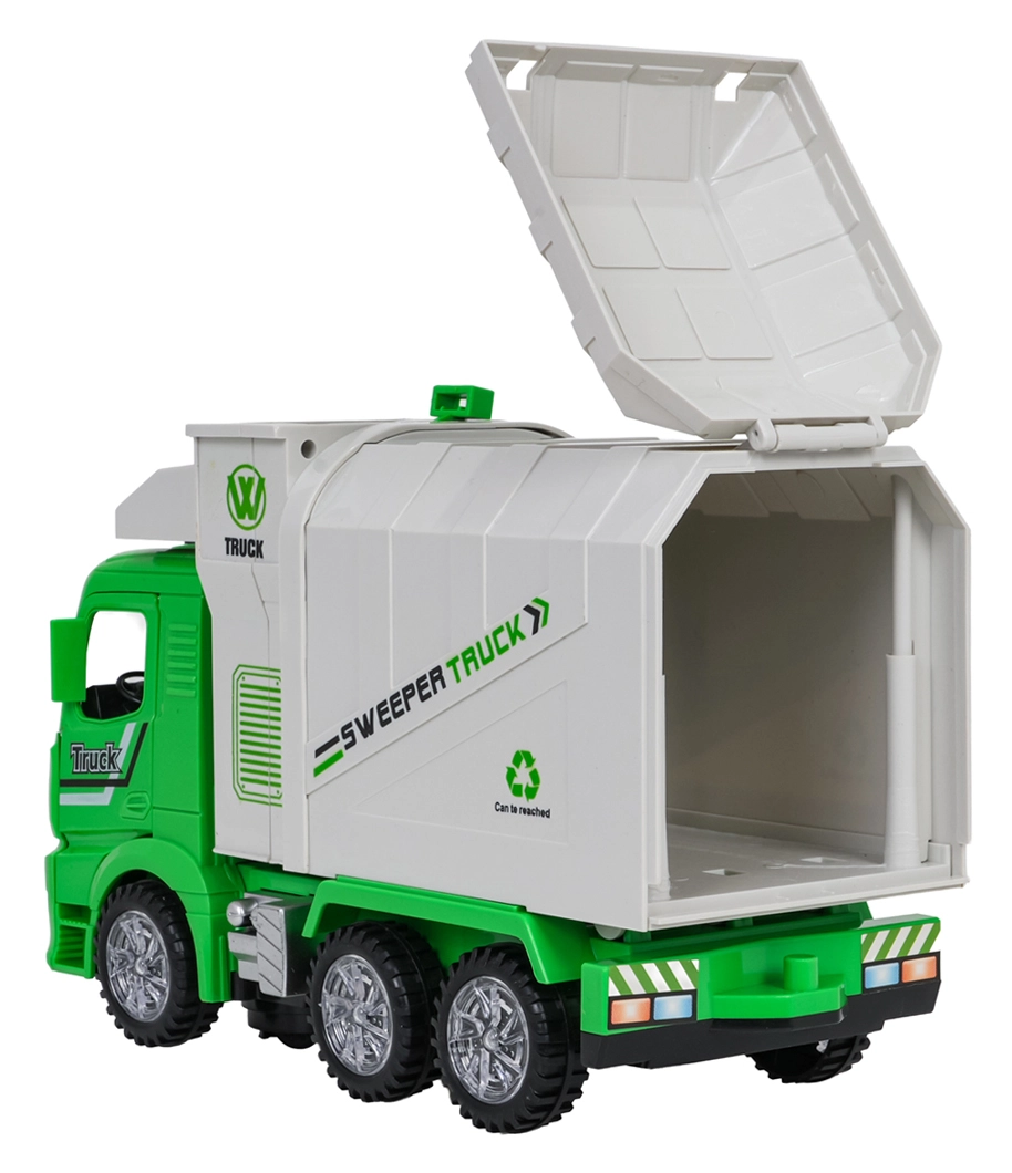 Interaktivní smetářské auto z kvalitního plastu potěší všechny malé milovníky techniky. Vůz se umí pohybovat všemi směry díky spodnímu otočnému kolečku, při jízdě svítí přední světla a podsvícená kola. Dveře kabiny se otevírají, kontejner lze zvedat a spouštět, stejně jako otevřít jeho zadní víko.