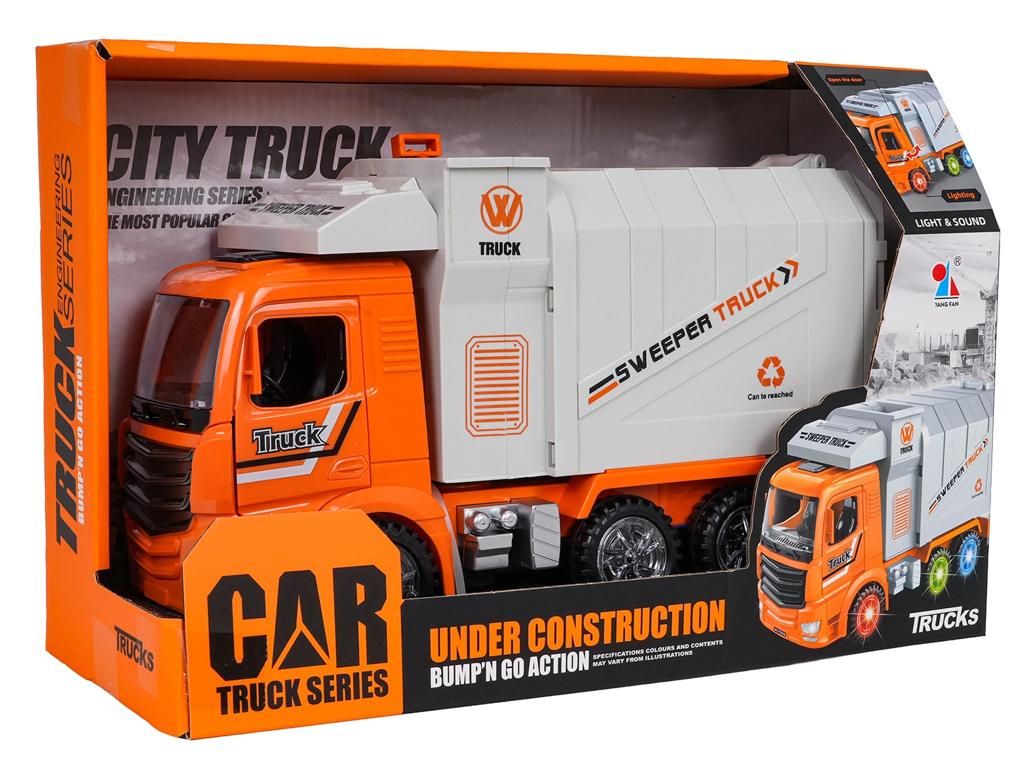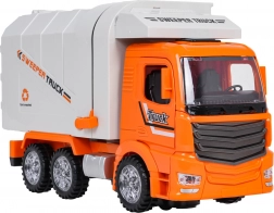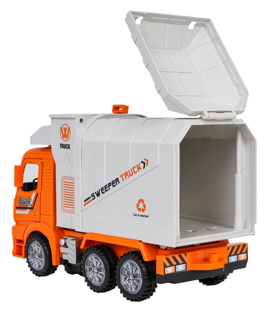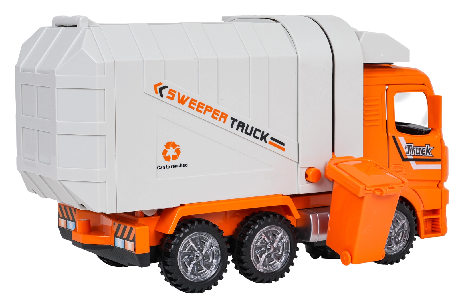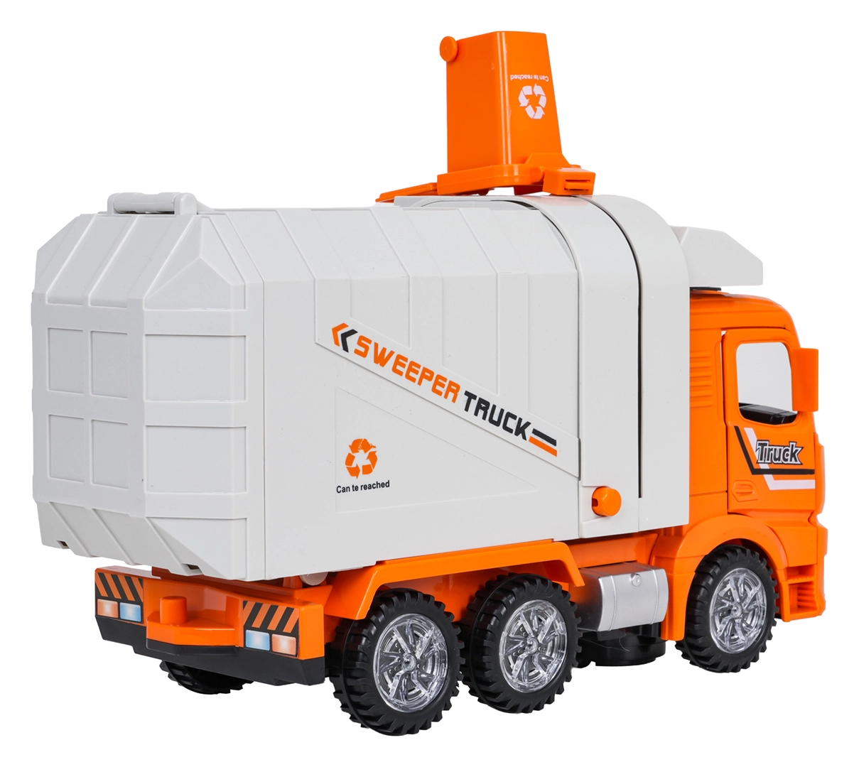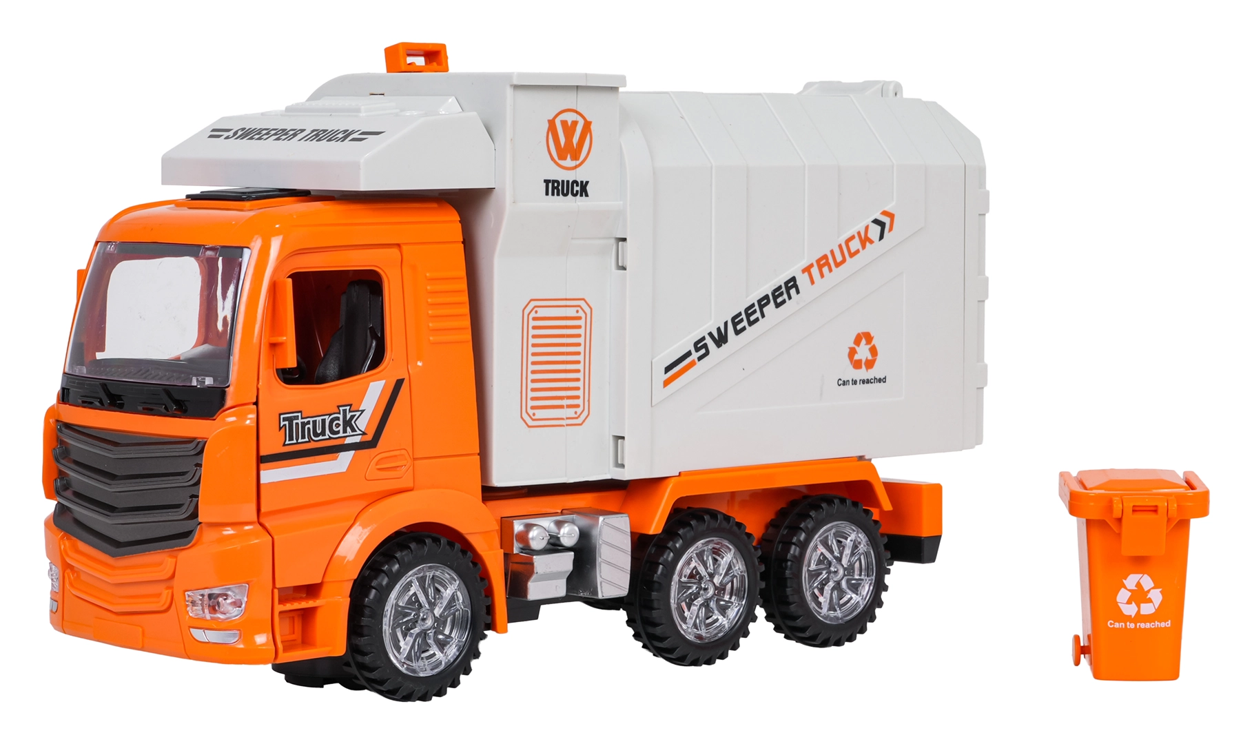 Toto oranžové popelářské auto je vyrobeno z kvalitního plastu s důrazem na detaily. Díky světelným a zvukovým efektům přináší dětem autentický zážitek z městského provozu. Ovládání zahrnuje jízdu všemi směry, otevírací dveře a automatické zvedání a spouštění kontejneru, což podněcuje kreativní a realistickou hru.