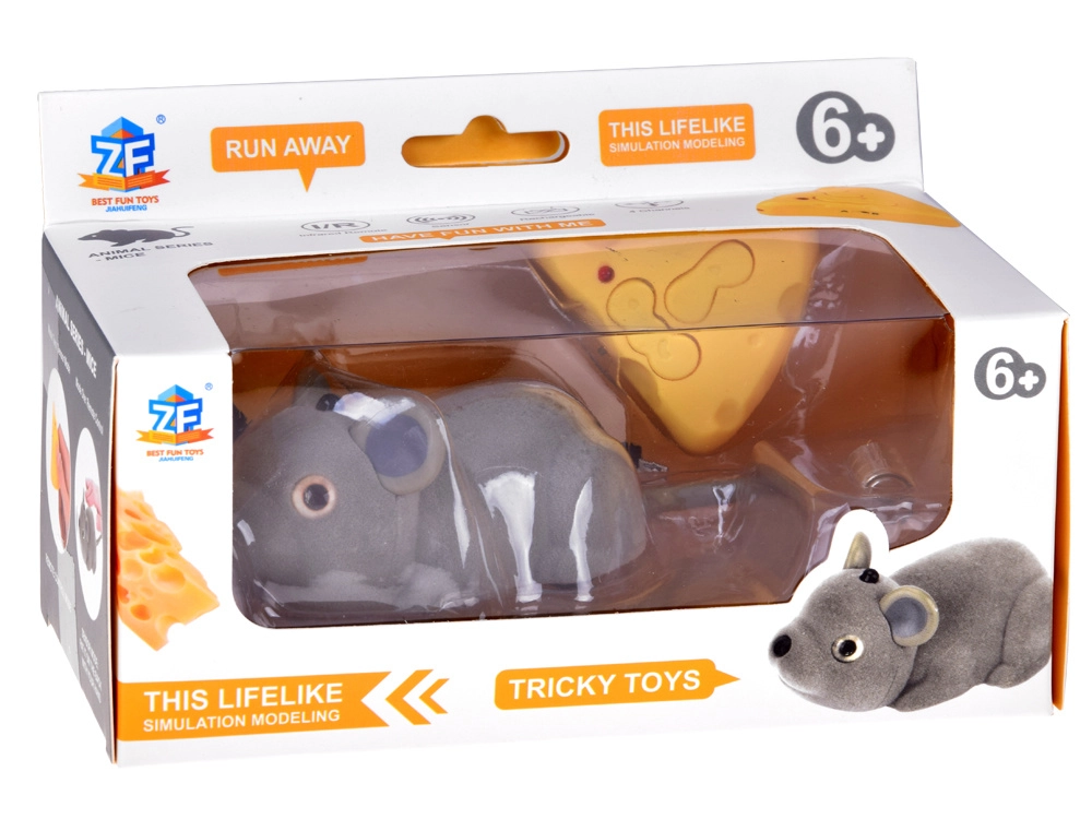Tato zábavná RC myška věrně napodobuje skutečný pohyb kořisti – má měkký povrch imitující srst, dlouhý ocas a kompaktní rozměry pro svižné manévry po bytě. Díky senzorickému čidlu myška „prchá“, když se ji někdo pokusí chytit, takže hra je ještě realističtější a plná napětí.