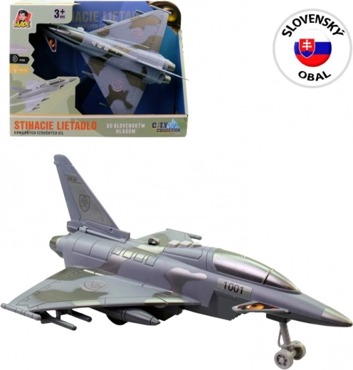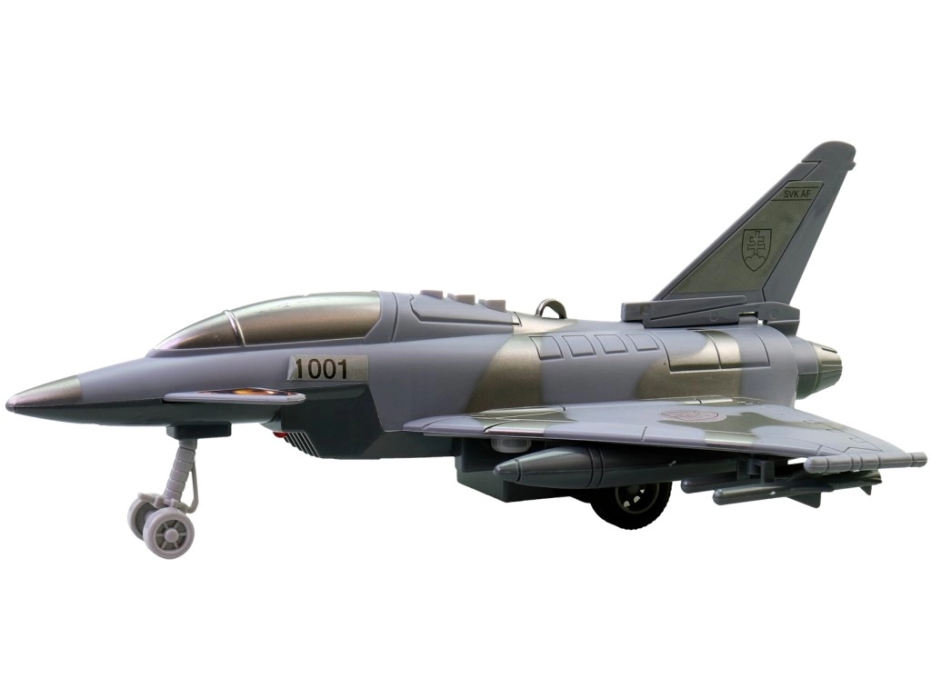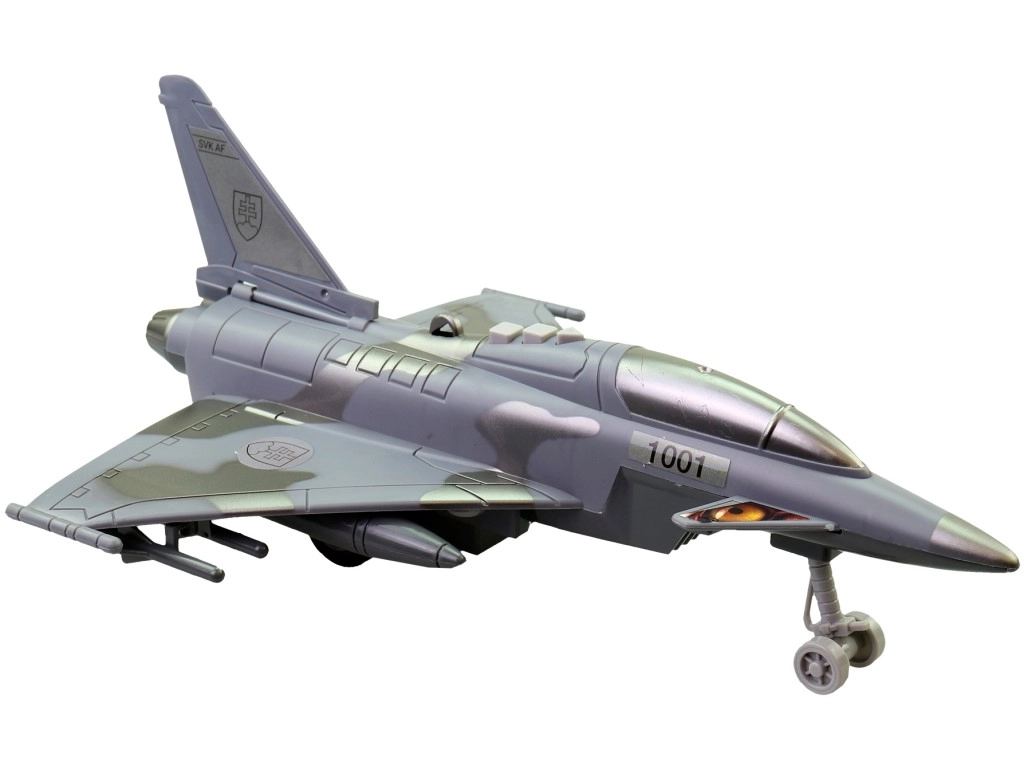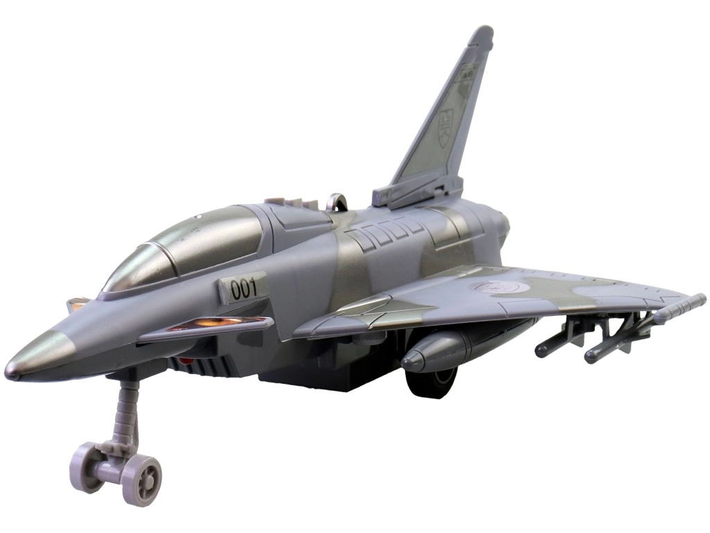 Toto realisticky zpracované stíhací letadlo potěší všechny malé milovníky letectví. Stačí ho postrčit a díky setrvačníku se rozjede, zatímco LED světla a autentické zvuky podtrhnou atmosféru vzrušující hry. Stabilní podvozek s volně se otáčejícími kolečky zajišťuje plynulý pohyb po podlaze.