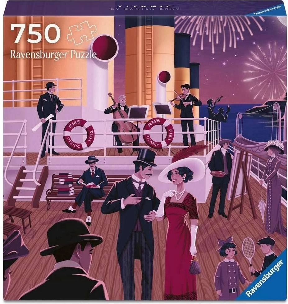 Objevte kouzlo kolekce Ravensburger Art & Soul s motivem Titanic v praktickém čtvercovém formátu. Prémiové puzzle nabízí vynikající kvalitu dílků, přesné výřezy a plakát v měřítku 1:1 pro pohodlné skládání. Součástí balení je také příběh motivu a informace o autorovi, to vše v ekologickém balení bez plastu.