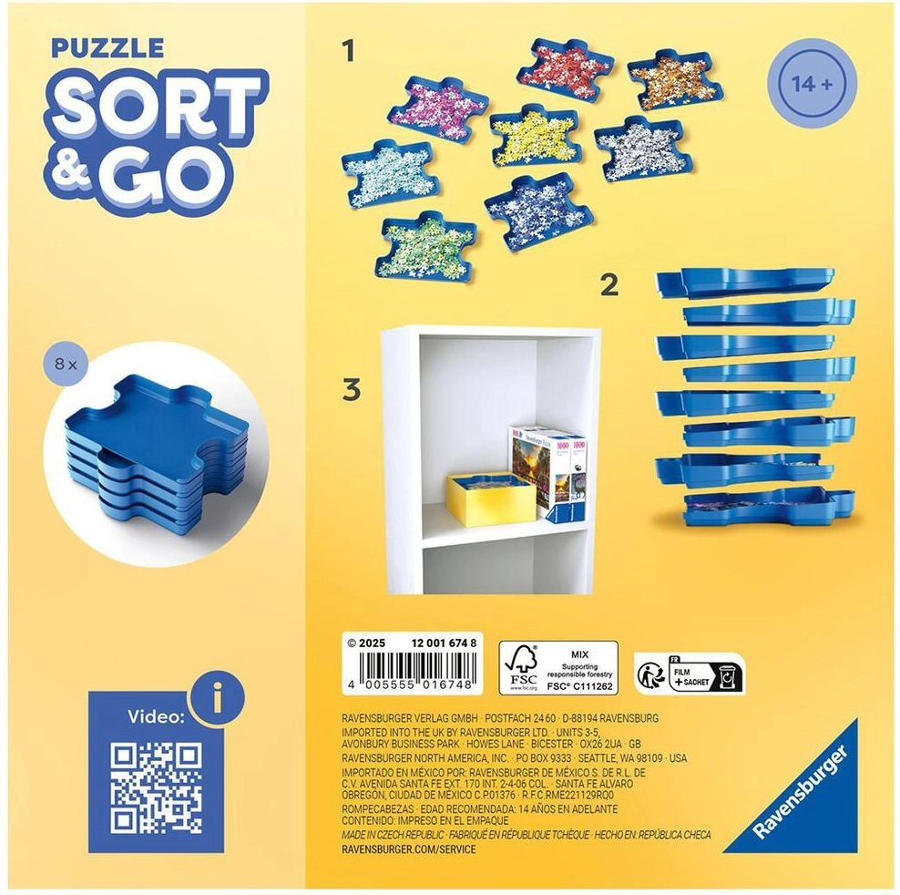 Usnadněte si skládání puzzle s praktickým pomocníkem od značky Ravensburger. Tento chytrý třídicí systém nabízí šest stohovatelných misek ve tvaru dílků, které umožní přehledné třídění podle tvaru i barvy. Přihrádky lze propojit k sobě a po dokončení skládání je jednoduše naskládat na sebe a uložit do krabice – dílky se neztratí a vše zabere méně místa.