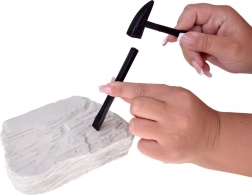 Součástí je robustní sádrový blok a ochranné brýle, které chrání oči při odkrývání fosilie. Ideální pro bezpečnou domácí archeologii.