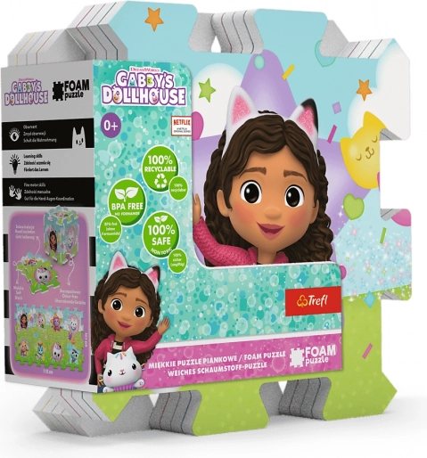 Objevte zábavná a bezpečná pěnová puzzle s motivem Gábinina kouzelného domku, ideální pro dětské hraní doma i v pokojíčku. Díky nadstandardní tloušťce 1,5 cm jsou puzzle příjemně měkké, omyvatelné a zdravotně nezávadné. Z osmi dílů snadno vytvoříte plochu 117 × 60 cm nebo z nich postavíte kostku či tunel pro autíčka.
