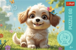 Užijte si zábavu s kvalitním puzzle TREFL s motivem roztomilého štěňátka. Díky 60 pevným dílkům je skvělé pro děti, které se učí skládat větší obrázky, ale stále potřebují přehledný formát. Hotový obrázek má kompaktní rozměr cca 33 × 22 cm a snadno se vejde na stůl či podložku.