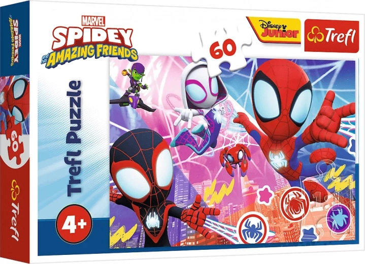 Dětské puzzle s motivem SPIDEY a jeho přátel nabídne zábavné skládání z 60 dílků a po složení má rozměr cca 33 × 22 cm. Ideální pro rozvoj jemné motoriky, trpělivosti a logického myšlení.