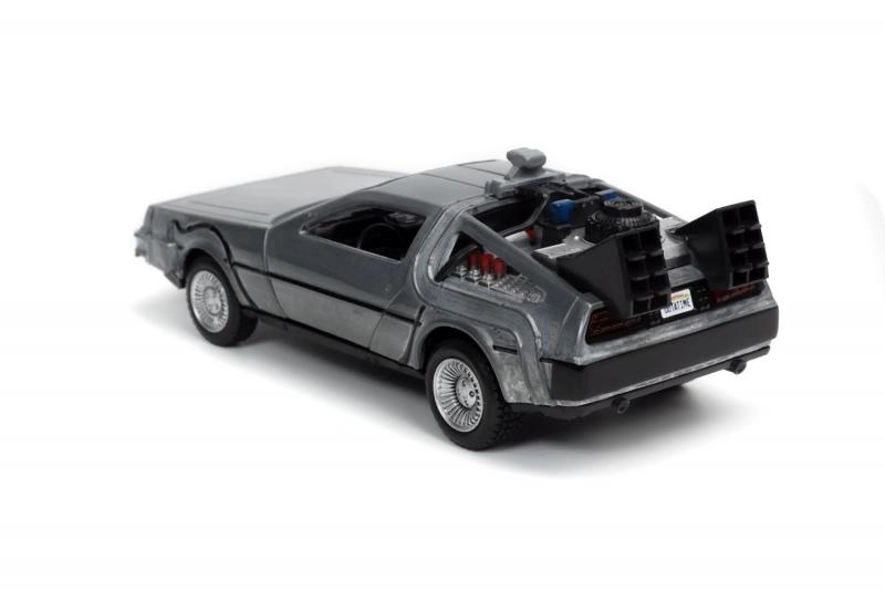 Věrně reprodukované linie DeLoreanu a detailní zadní aparatura časového stroje potěší každého fanouška BACK TO THE FUTURE.