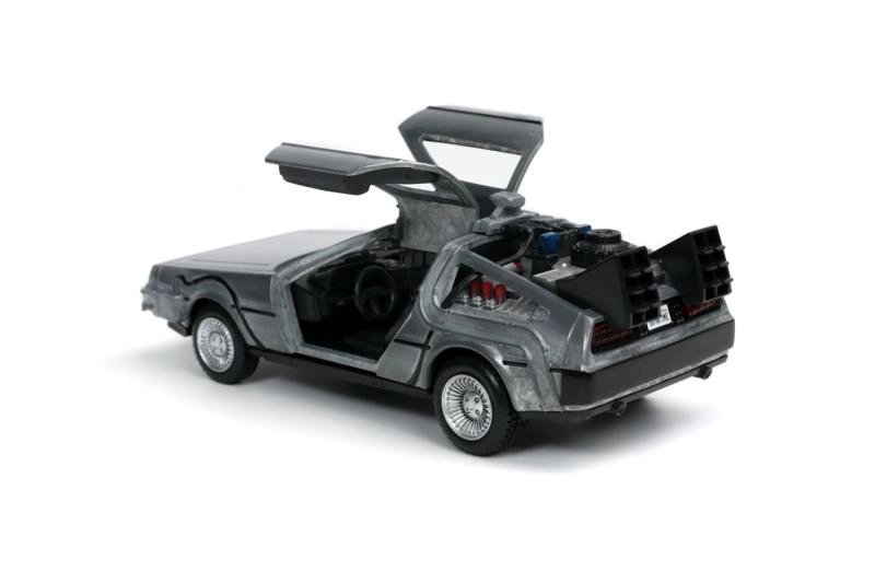 Tento realistický die-cast model legendárního DeLoreanu – časostroje ze série filmů BACK TO THE FUTURE – přináší autentické detaily včetně zadního aparátu časového stroje, věrných diskových kol a čistých linií karoserie v kovovém provedení. Měřítko 1:32 zajišťuje ideální velikost pro vystavení na poličce i do sběratelských vitrín.