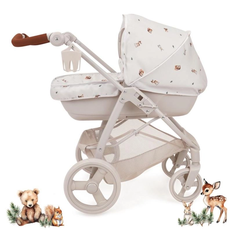 Stylový kočárek pro panenky 2v1 Bella v designu Woodland potěší malé pečovatelky svým promyšleným provedením. Nabízí kombinaci hlubokého kočárku a sportovní verze, má nastavitelnou rukojeť, otočné přední kolo pro snadné manévrování, velký úložný košík a praktickou tašku na příslušenství. Díky odnímatelné korbičce, stříšce a návleku na nožičky je ideální na hraní doma i venku.