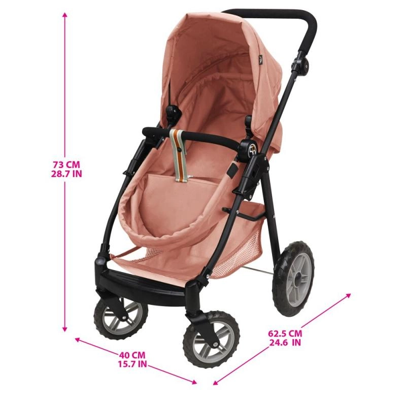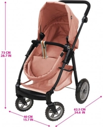 Pro pohodlné ovládání je kočárek vybaven nastavitelnou rukojetí a otočným předním kolem, které usnadňuje manévrování i v menších prostorech. Velký košík poskytne dostatek místa pro doplňky a drobnosti. Vhodný pro panenky do cca 53 cm a ideální pro rozvoj jemné motoriky i fantazie.