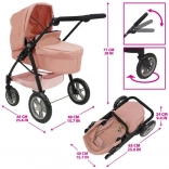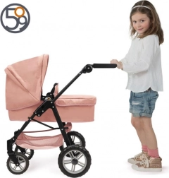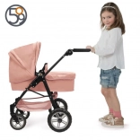 Růžový kočárek pro panenky 2v1 je skvělou volbou pro každodenní hraní. Luxusní provedení s odnímatelným sedátkem umožňuje snadno přeměnit hluboký kočárek na sportovní variantu. Přibalená stříška a kryt na nožičky udrží panenku v pohodlí za každého počasí.