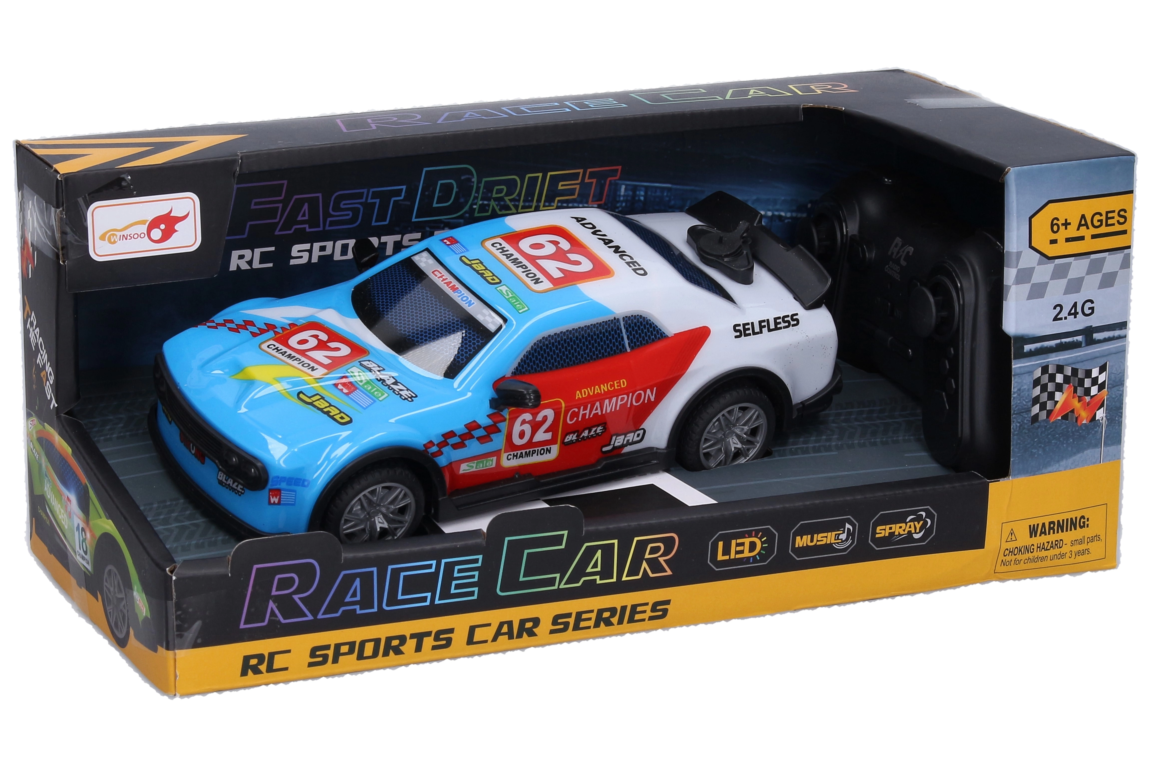 Auto je vybaveno dobíjecí baterií a praktickým USB kabelem. Díky frekvenci 2.4 GHz můžete jezdit i s více vozy najednou bez vzájemného rušení. Nádržka na vodu pro dýmící efekt je umístěna v zadní části před křídlem a ovládání zajišťuje přehledný ovladač s přepínačem ON/OFF.