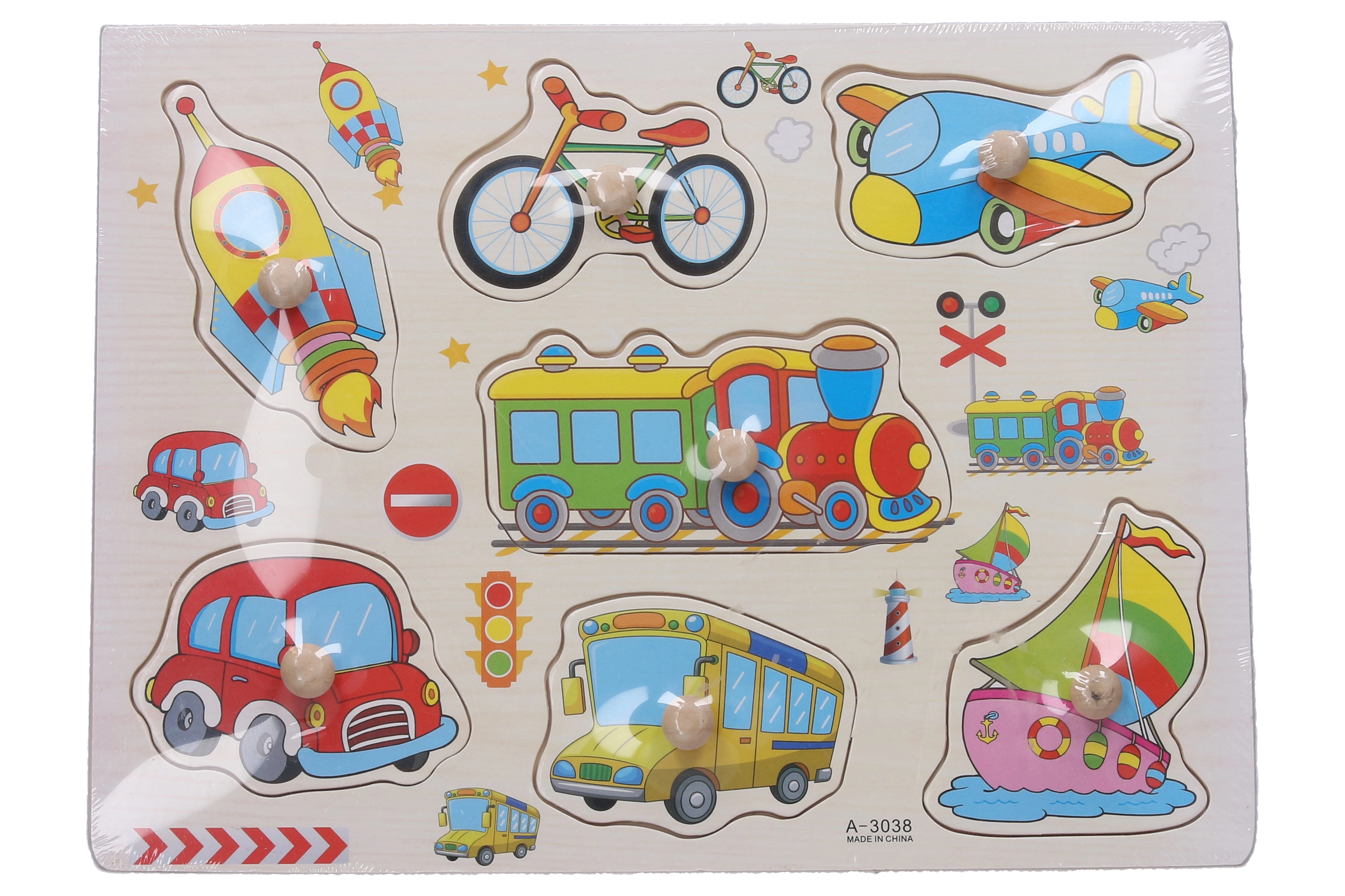 Tato kvalitní dřevěná vkládačka s dopravními prostředky je ideální pomůckou pro děti, které se učí rozpoznávat tvary a objekty kolem sebe. Díly se snadno uchopují a zapadají do předem vyfrézovaných otvorů, což podporuje koordinaci oko–ruka.