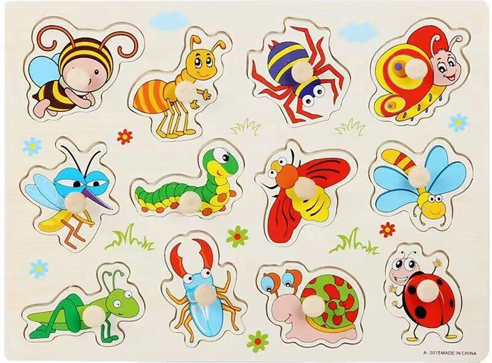 Tato kvalitní dřevěná vkládačka s barevnými motivy hmyzu je ideální pro první seznamování dětí se světem zvířátek. Díly se snadno uchopují a přesně zapadají do připravených otvorů, což podporuje koordinaci ruka–oko a trpělivost.