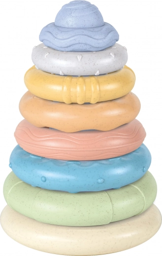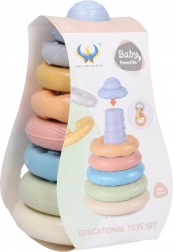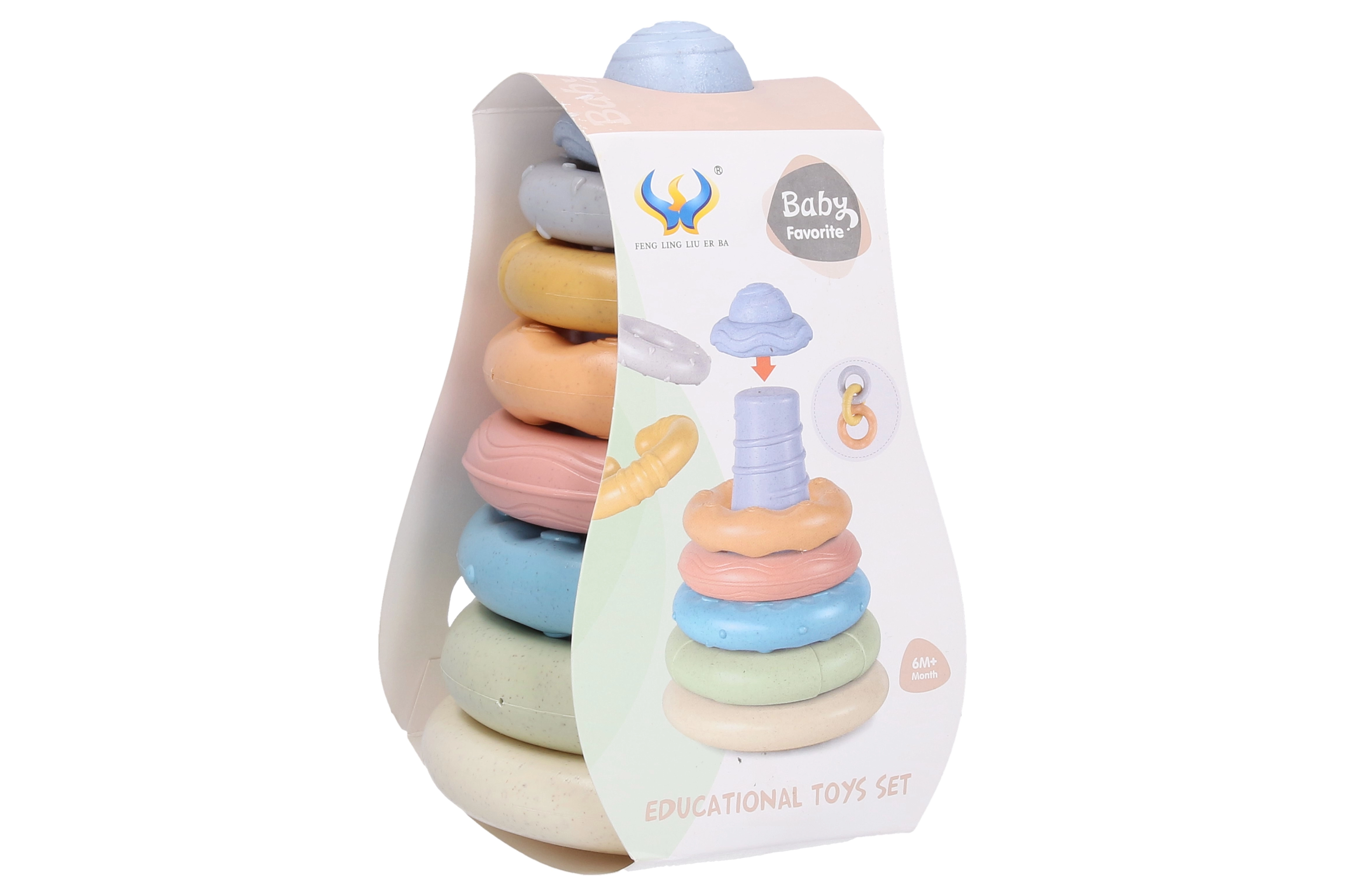 Tato klasická vzdělávací hračka podporuje správný vývoj dítěte hravou formou. Díky různým velikostem kroužků se děti učí rozpoznávat pořadí, barvy a trénují úchop. Věž je lehká, odolná a ideální pro každodenní hraní doma i na cestách.