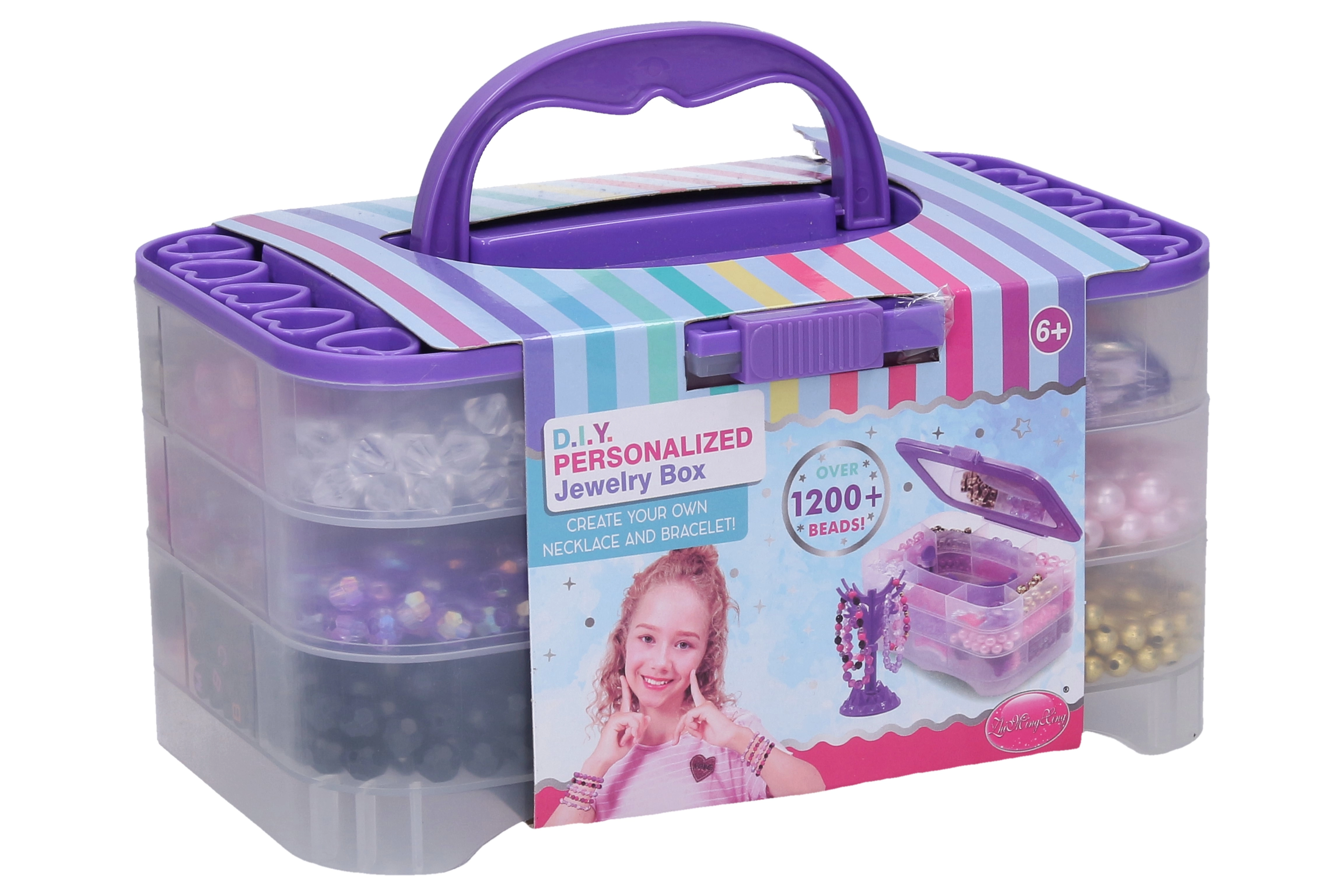 Kreativní set pro výrobu náramků s praktickou úložnou krabičkou pro přehledné třídění korálků. Součástí jsou korálky, šňůrky a stojánek na hotové náramky – vše, co potřebujete pro snadné a zábavné tvoření.