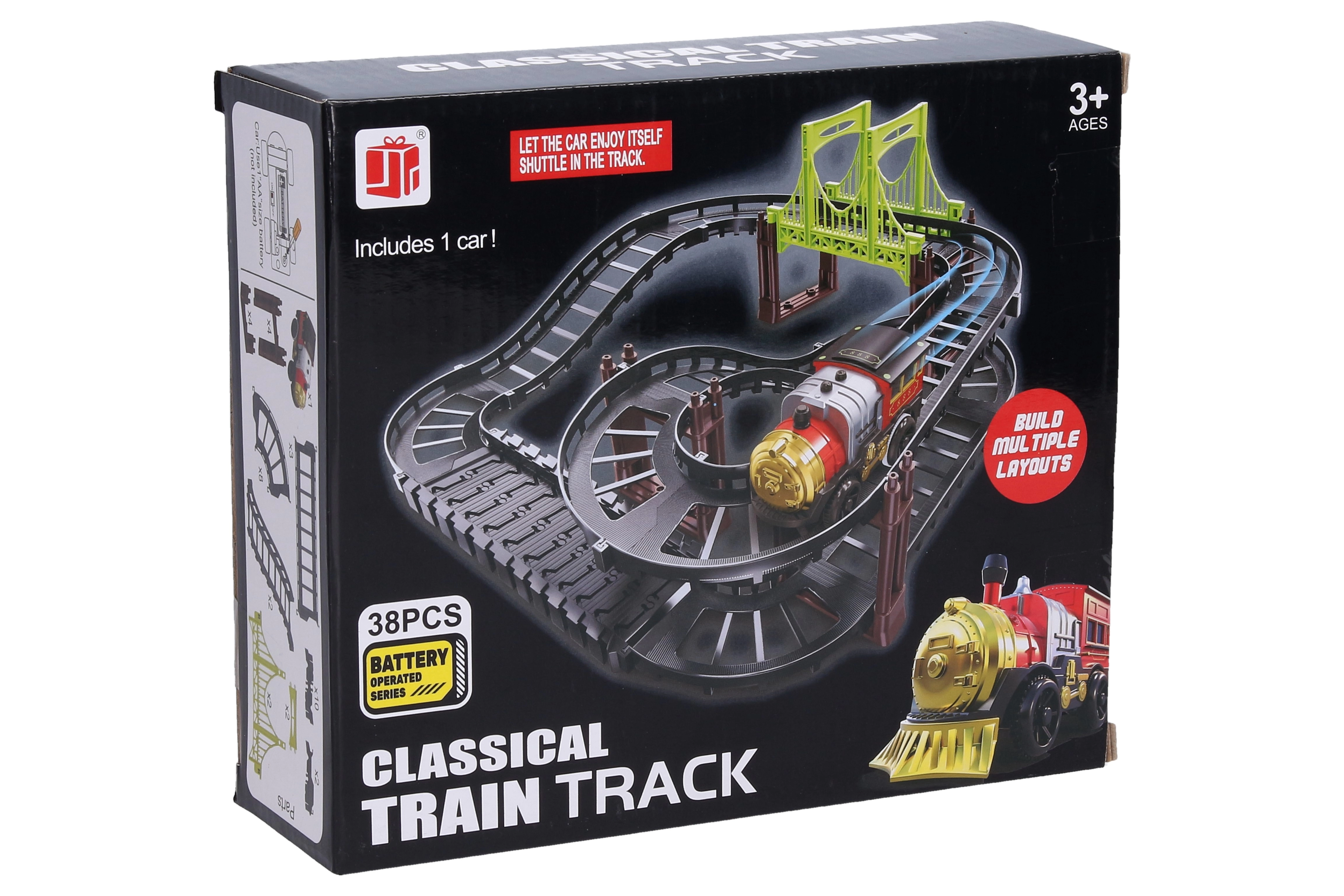 Zábavná vláčkodráha pro děti nabízí jednoduché ovládání a rychlé sestavení. Mašinka na baterii se spouští přepínačem ON/OFF, sada obsahuje 38 dílů a potěší kompaktními rozměry 31 × 32 × 14 cm. Ideální dárek pro malé milovníky vlaků.