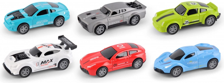 Objevte sadu kompaktních kovových závodních autíček, která jsou ideální do dětských rukou i na domácí závody. Díky robustnímu kovovému tělu a volným kolům je jízda plynulá a zábavná na různých površích. Různé barevné varianty a potisky přinášejí do hry pestrost a podněcují fantazii.