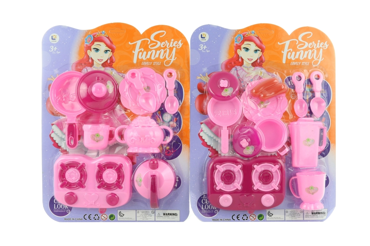 Zábavná plastová sada nádobí pro malé kuchaře přináší vše potřebné pro hraní na vaření – vařič, hrnec, pánvičku a talířky. Ideální pro rozvoj fantazie a motorických dovedností, vhodné od 3 let.