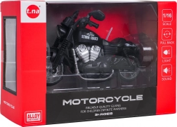 Realistický kovový motocykl v měřítku 1:16 potěší malé motorkáře od 3 let. Má kovovou karoserii, gumové pneumatiky s dobrou přilnavostí a zpětný pohon (pull-back). Po stisknutí zadního kola se aktivují světelné efekty a zvuk startování. Baterie 3× AG3 jsou součástí balení.