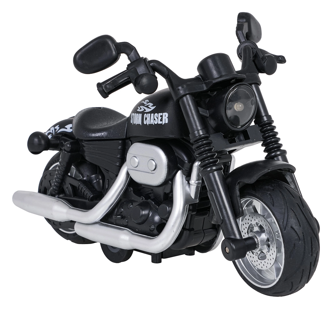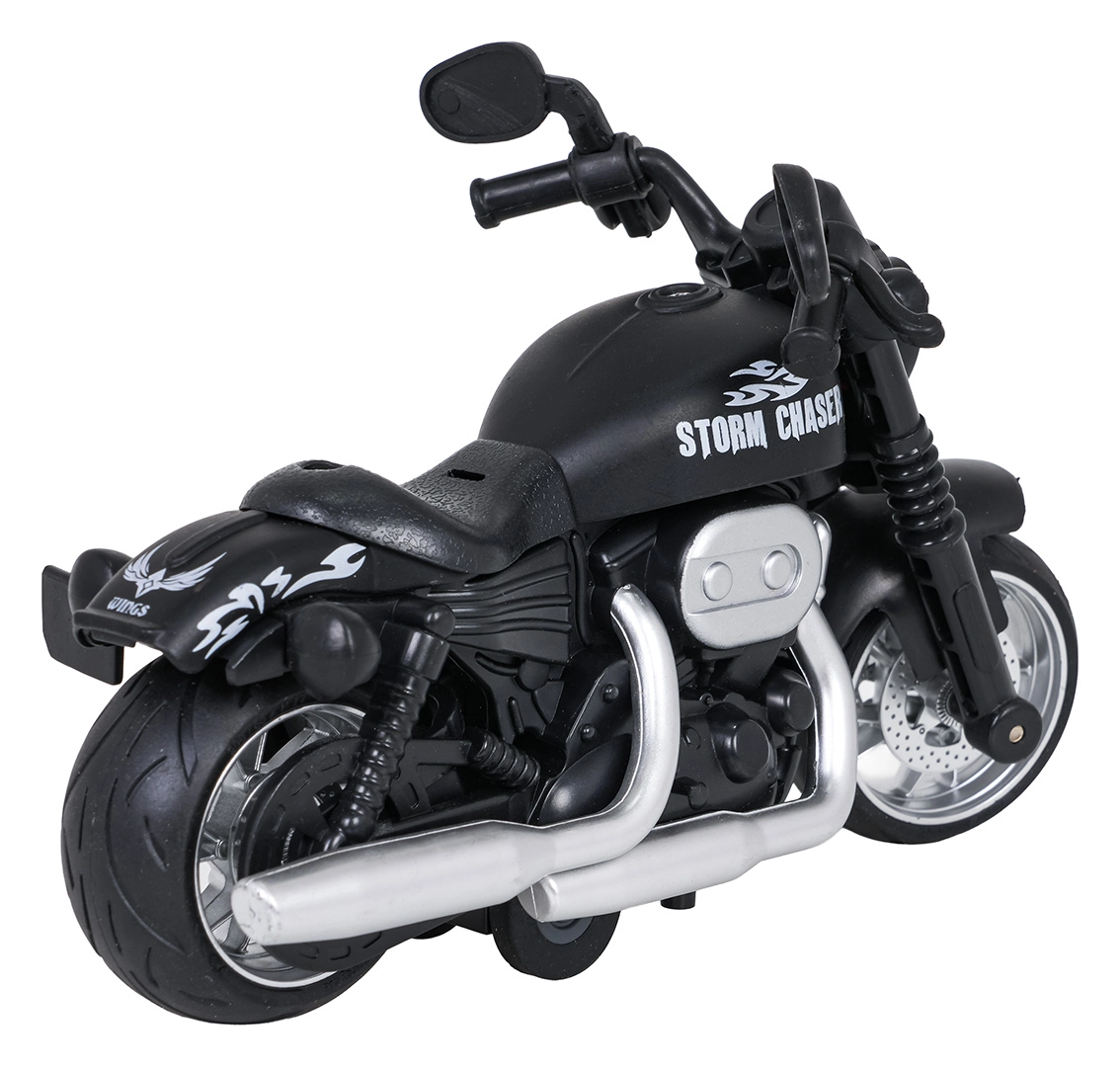 Užijte si akční jízdu s detailně zpracovaným modelem motorky STORM CHASER. Robustní kovové provedení, věrné detaily motoru a výfuků a gumové pneumatiky zajišťují skvělý vzhled i odolnost při hraní. Díky zpětnému pohonu stačí natáhnout a pustit – motorka vyrazí vpřed.