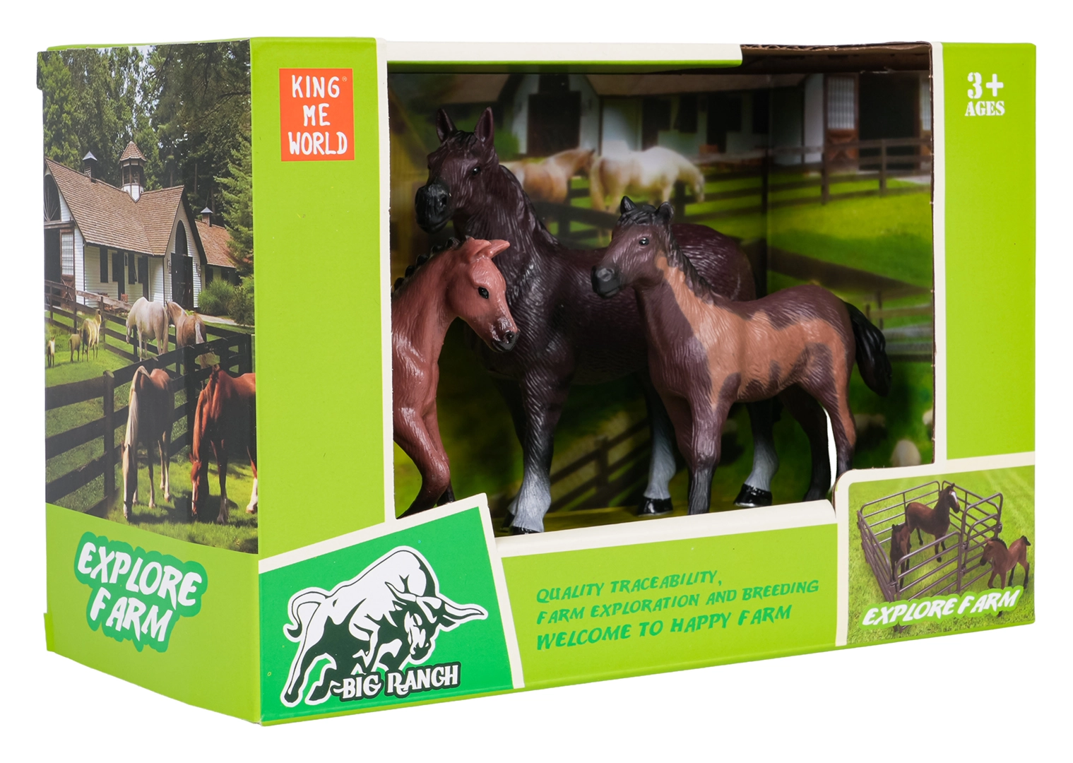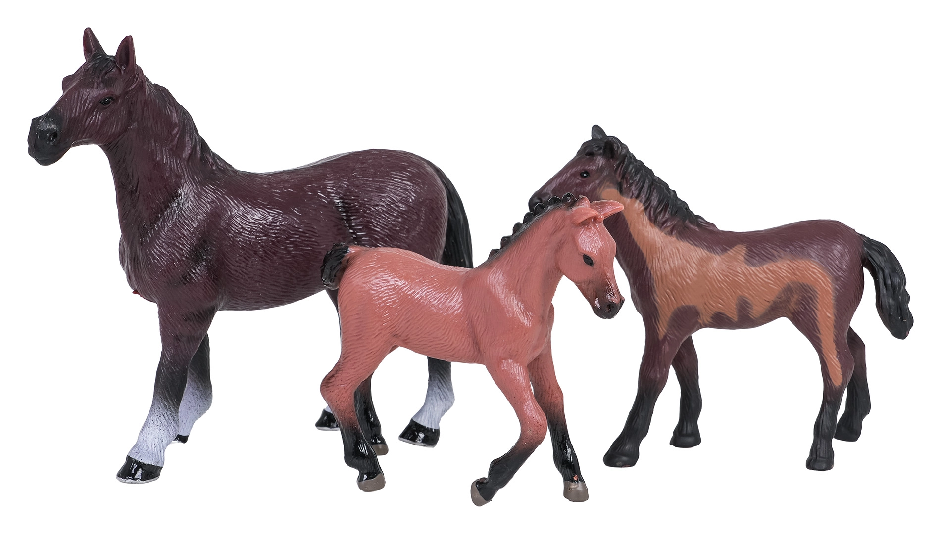 Objevte kouzlo koňského světa se sadou tří detailně zpracovaných figurek. Jsou vyrobené z bezpečných materiálů, skvěle padnou do dětské ruky a podporují fantazii a jemnou motoriku. Ideální jako dárek pro děti od 3 let.