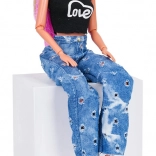 Trendy top, džíny a boty na podpatku lze snadno sundat a kombinovat s dalšími kousky pro nekonečné převlékání.