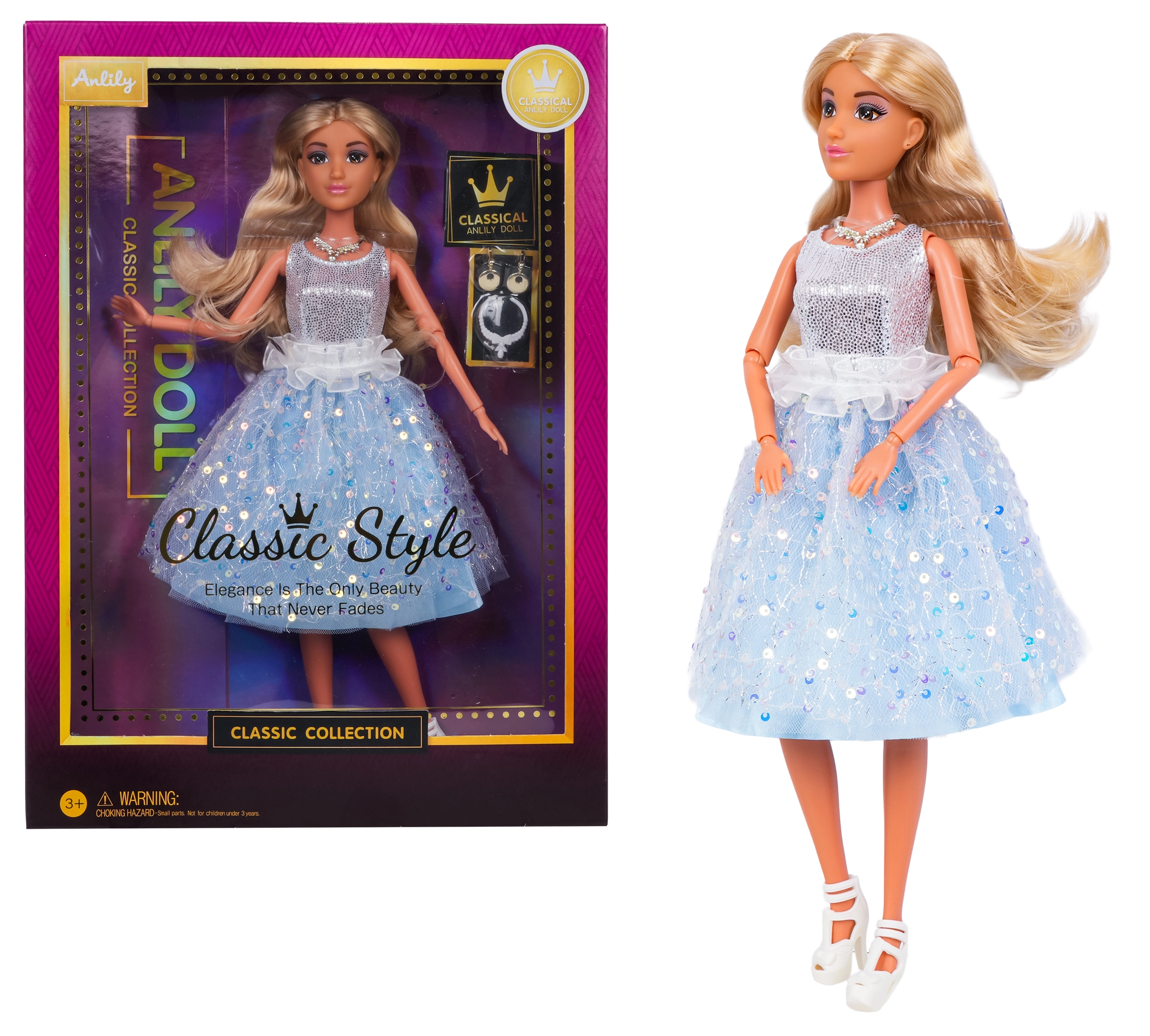- Prémiové provedení: pečlivé zpracování, třpytivé šaty a ladící doplňky.