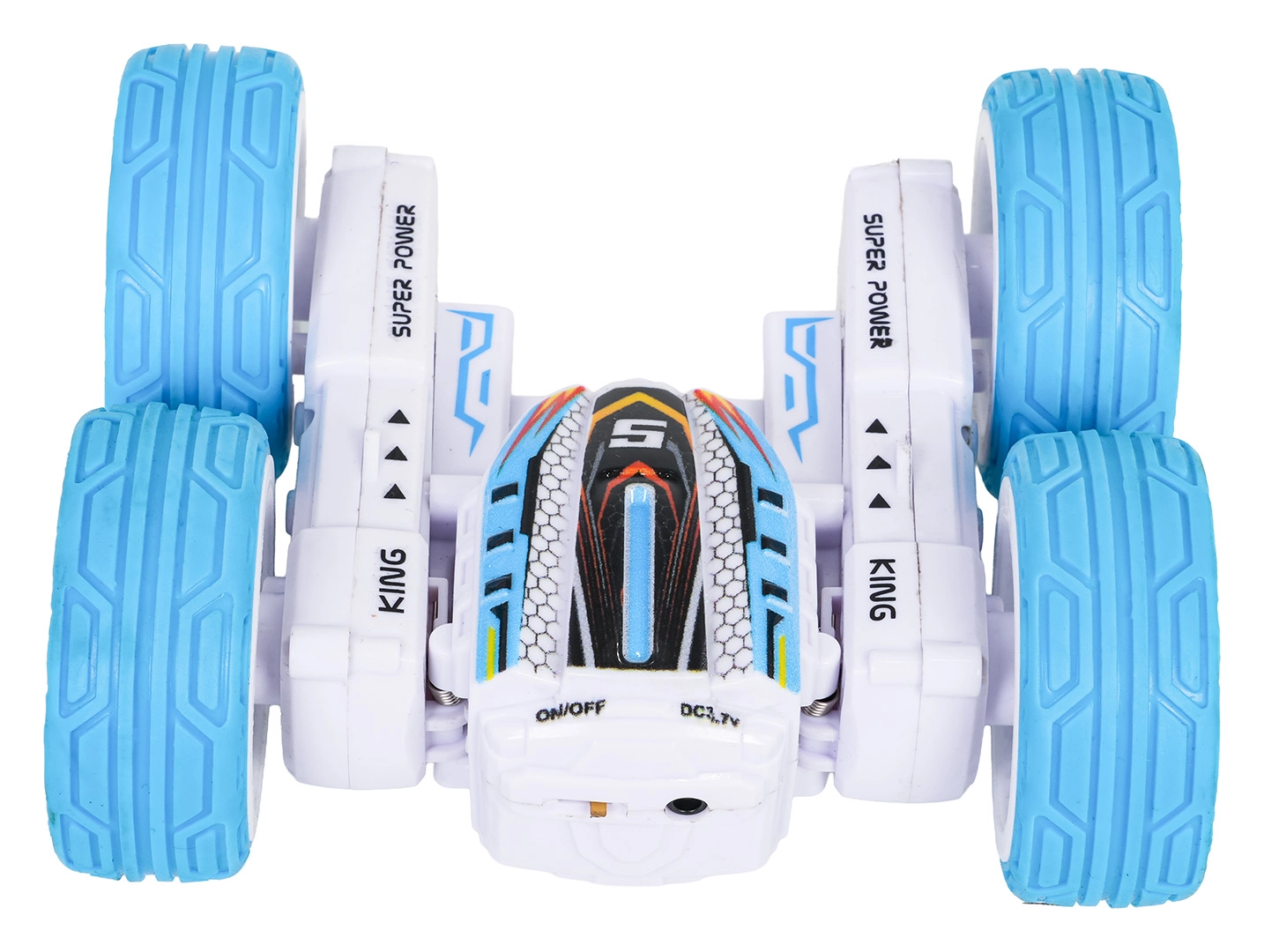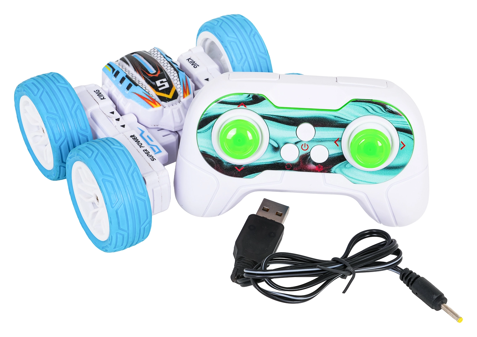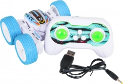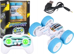 RC kaskadérské auto POWER STUNT vyniká obratností a efektními triky. Díky velkým gumovým kolům zvládá nerovnosti, jezdí vpřed i vzad, vpravo i vlevo, bokem a umí se otočit o 360°. Oboustranná konstrukce umožňuje pokračovat v jízdě i po převrácení. Barevná LED světla dodávají jízdě parádní podívanou.