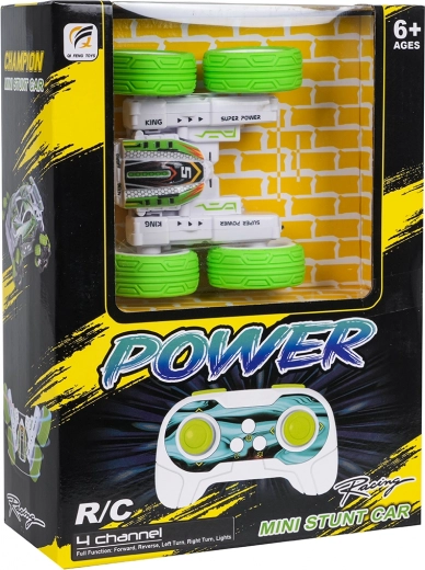 RC kaskadérské auto POWER STUNT v měřítku 1:32 je navrženo pro dynamickou zábavu. Velká, výrazně přilnavá gumová kola umožňují jízdu vpřed i vzad, do stran, převalení a akrobatické triky včetně 360° rotací. Robustní plastová karoserie vydrží nárazy, takže je ideální na domácí podlahy i hladké venkovní povrchy.
