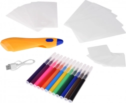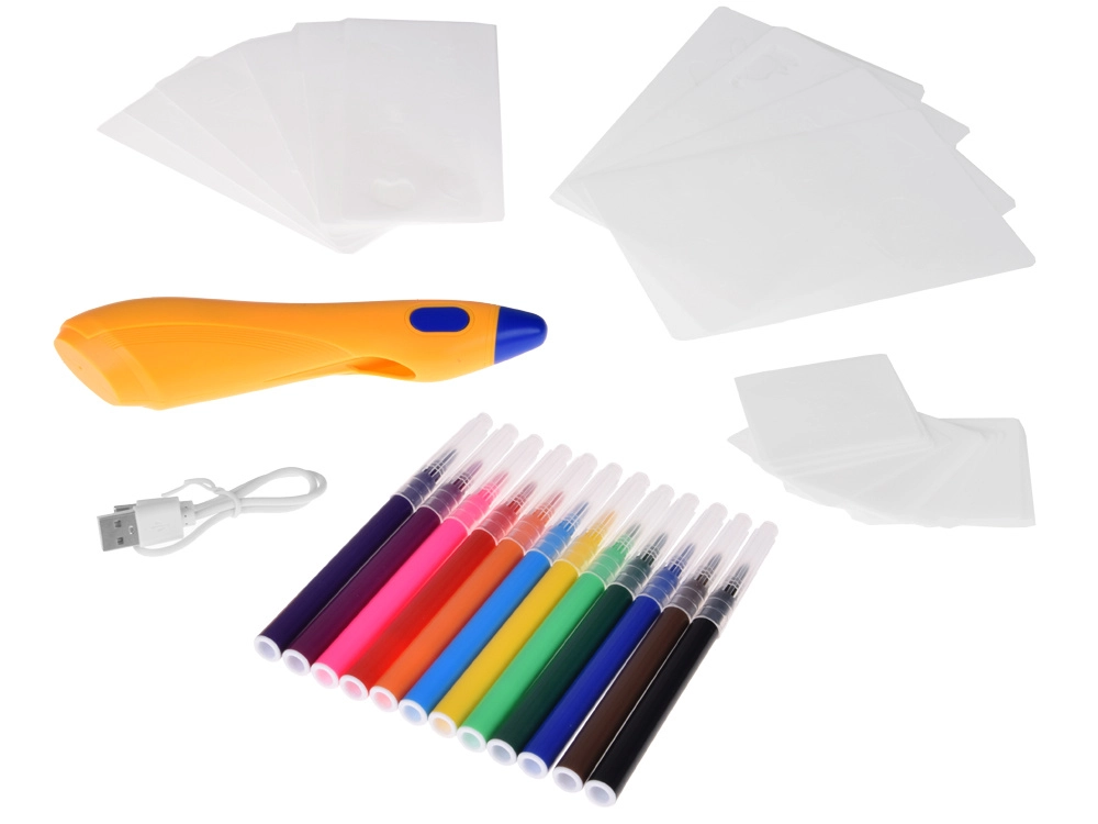 - Elektrické airbrush pero, 30 ks šablon, 12 barevných fixů, USB kabel