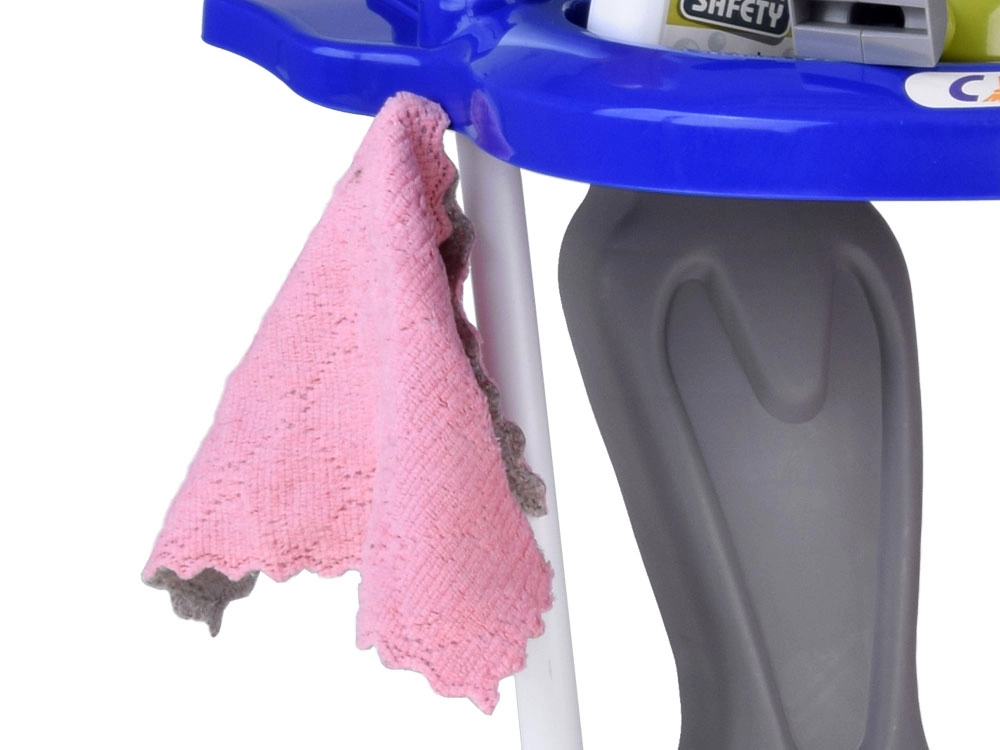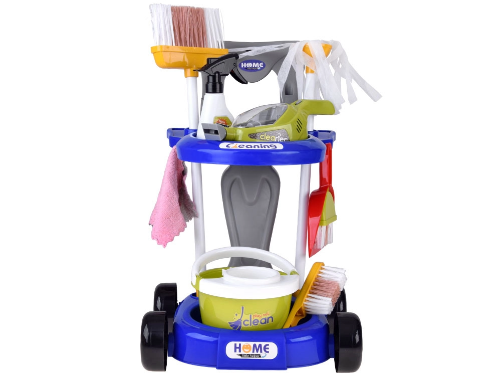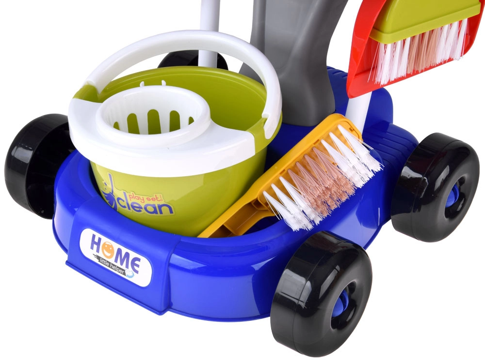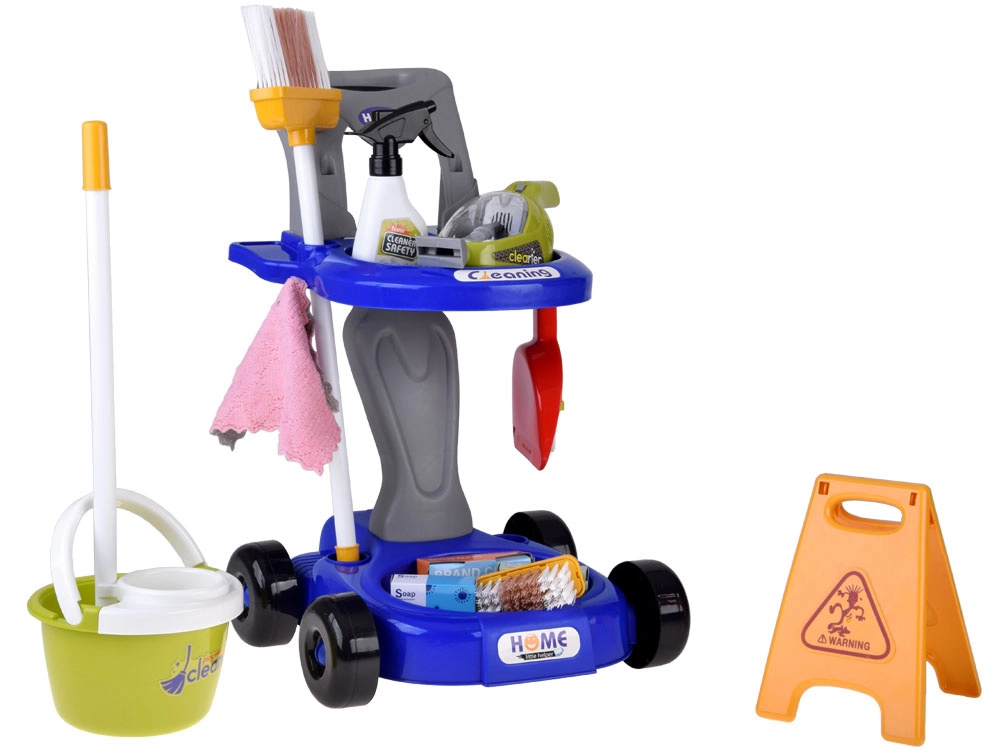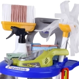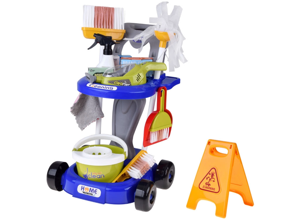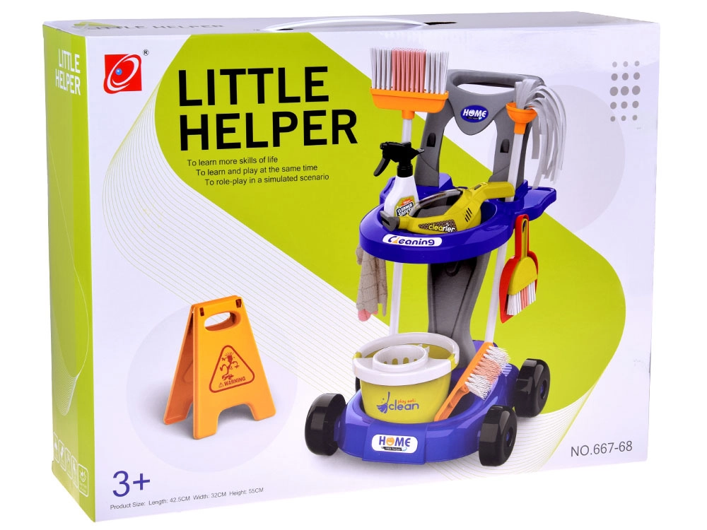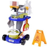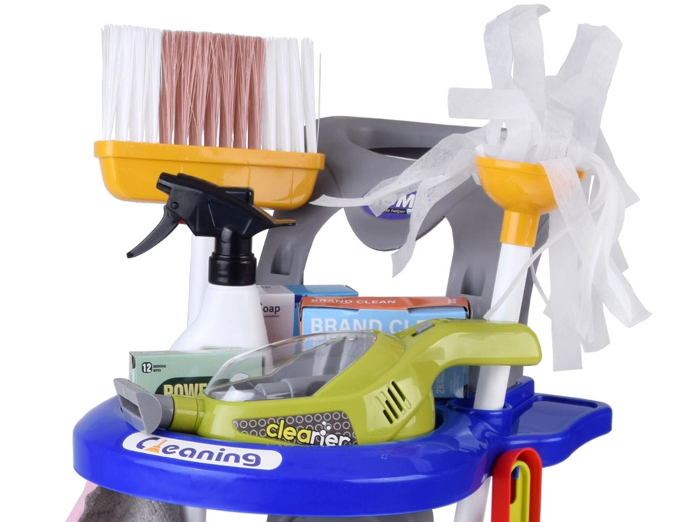 Dopřejte dětem realistickou zábavu s úklidovým vozíkem plným doplňků. Set obsahuje mop, koště, smetáček se škrabkou, kbelík s lisem, hadřík, rozprašovač, varovnou ceduli, kartonové krabičky a hračkový vysavač s vyměnitelnými nástavci a kuličkami na „vysávání“. Děti tak bezpečně napodobí každodenní činnosti dospělých a naučí se, jak je důležité udržovat pořádek.