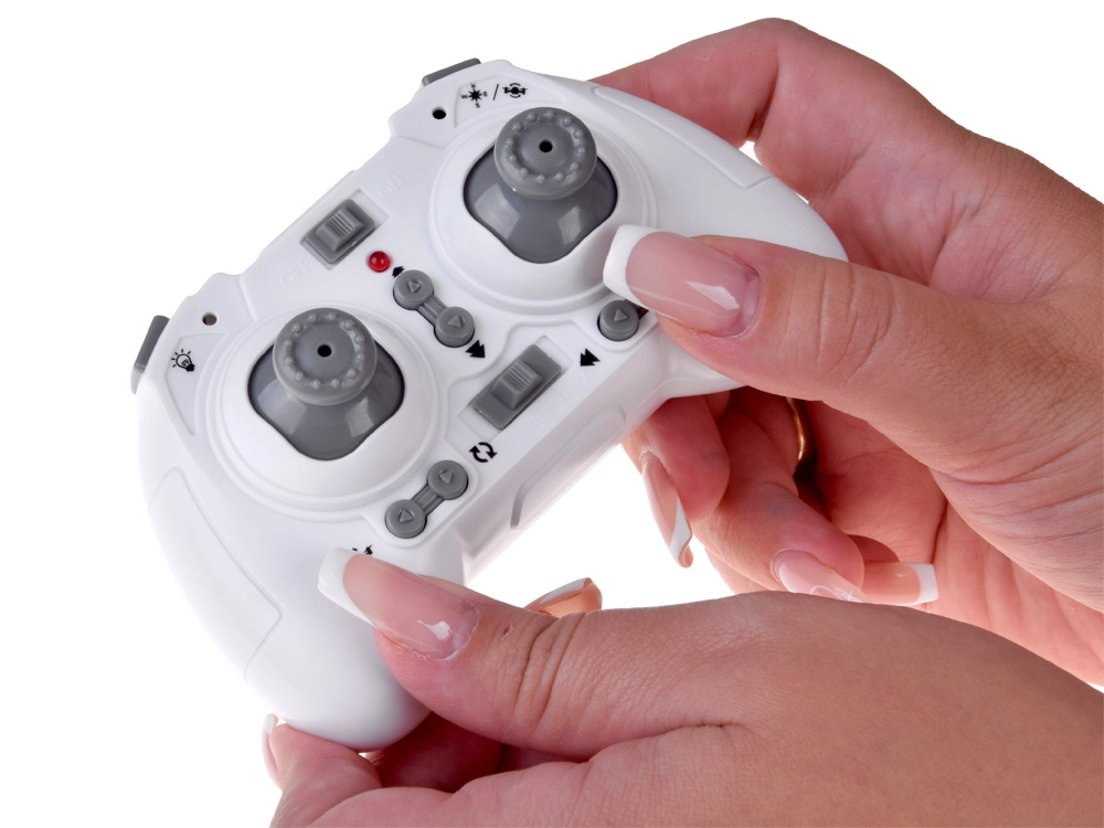 - Start/přistání jedním tlačítkem, 360° akrobacie, stabilizace letu, nouzové zastavení, upozornění na nízkou baterii