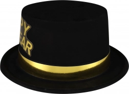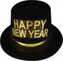 Dodejte svému silvestru jiskru. Tento elegantní černý klobouk se zářícím zlatým páskem a nápisem HAPPY NEW YEAR upoutá pozornost a podtrhne atmosféru půlnočního odpočítávání. Je ideální pro domácí párty, kluby i firemní večírky.