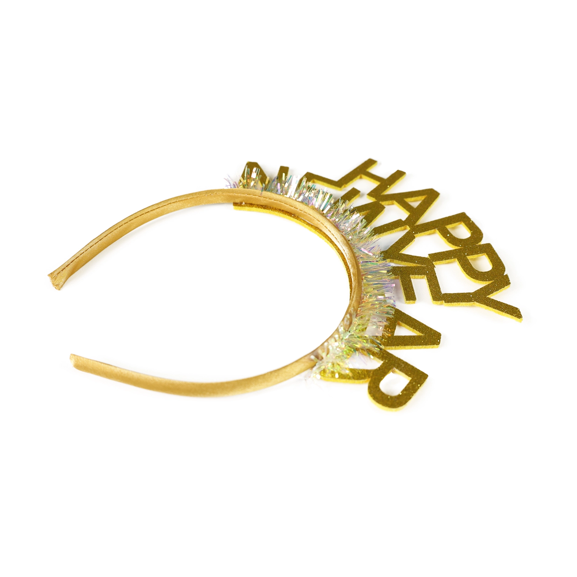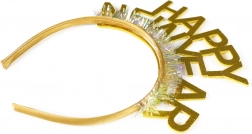 Stylová párty čelenka v elegantní zlaté barvě s třpytivým nápisem HAPPY NEW YEAR dodá vašemu outfitu sváteční šmrnc. Ideální doplněk na silvestrovskou oslavu, večírek i tematické focení.